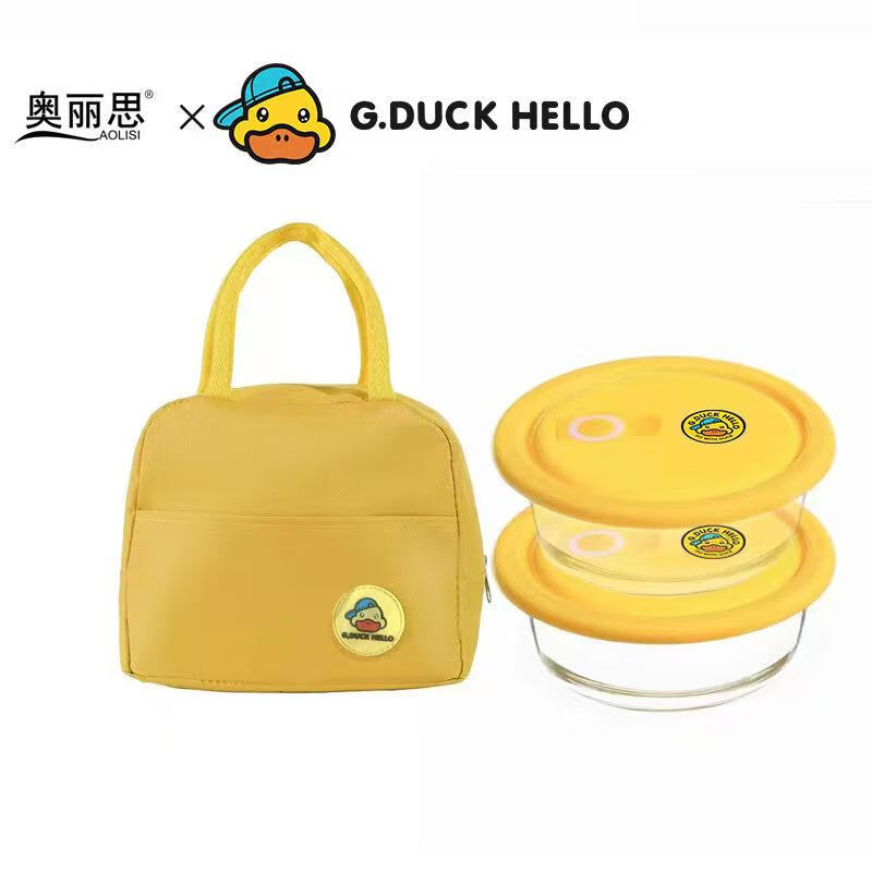 • 奥丽思 联名小黄鸭玻璃饭盒保鲜盒两件套Y1101-22B
