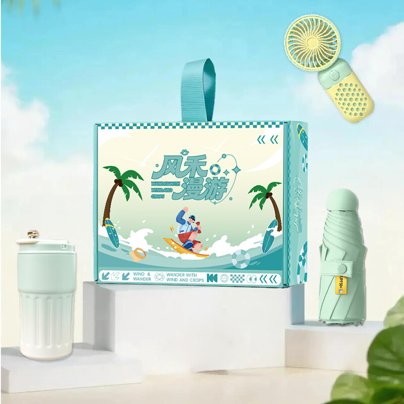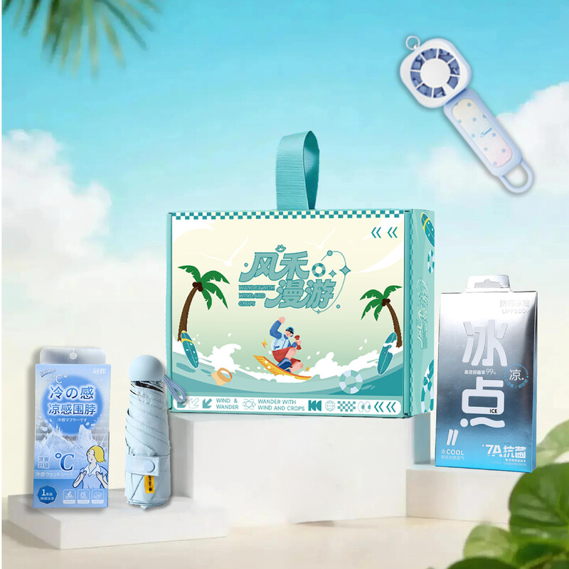 飞机盖手提礼盒;围脖:材质:冷感纱;胶囊雨伞: 8股五折黑胶
