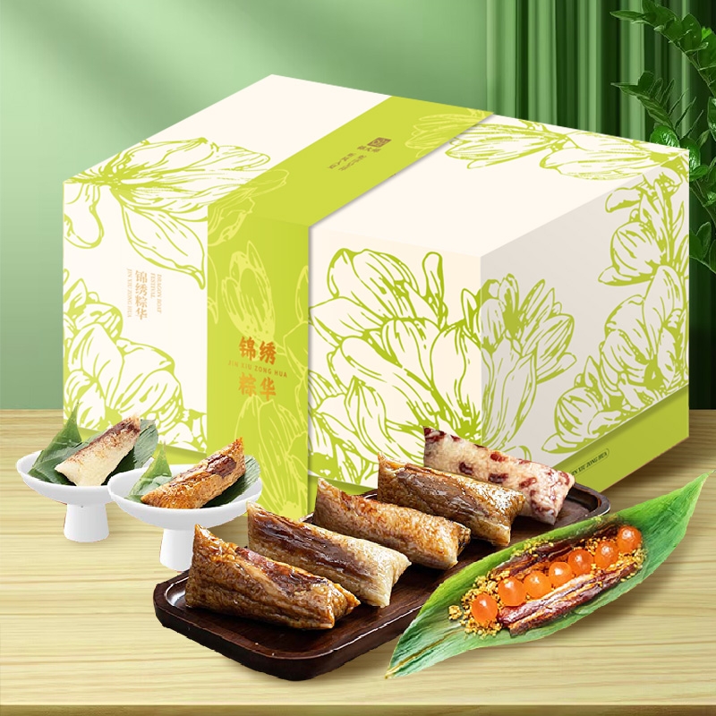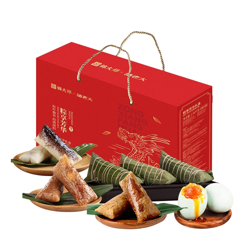 选用优质糯米、新鲜肉类、海鲜等食材,确保粽子的口感;采用传统手工制作工艺,确保粽子的形状、口感和风味符;精美礼盒装