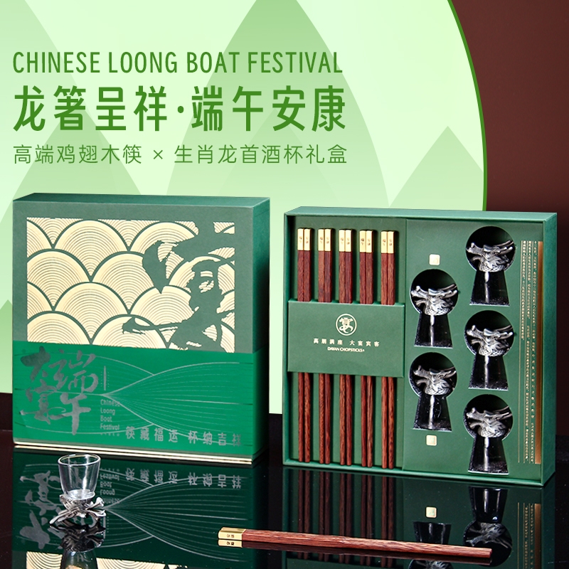 端午限定礼盒,鸡翅木筷 + 龙首酒杯,一筷福运一杯;端午五福礼,5 双实木筷 + 5 只龙首杯;龙首酒杯,端午送礼不撞款