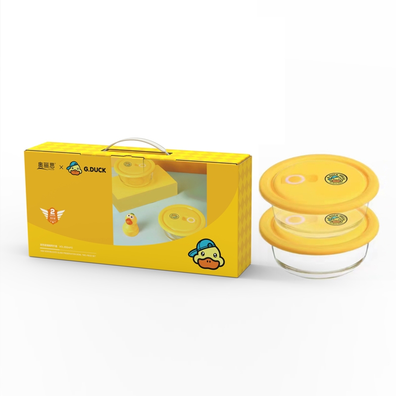小黄鸭联名款,爆款产品。;耐热玻璃,微波炉适用。;密封保鲜,不漏水。