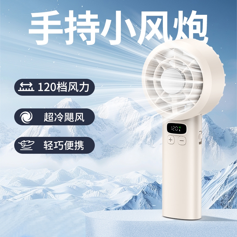 产品风量120档可调,超强风力,无噪音;数显电量、手机通用Type-c充电接口、手持桌面两;产品小巧携带方便,可定制企业LOGO