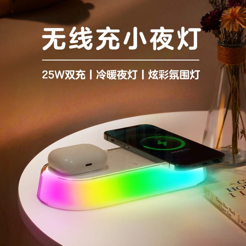 15W手机无线充+10W手机/5W耳机无线充+小夜;双位无线充小夜灯;可定制logo