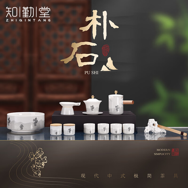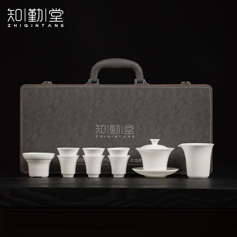 知勤堂 乘风破浪白瓷功夫茶具套装礼盒装