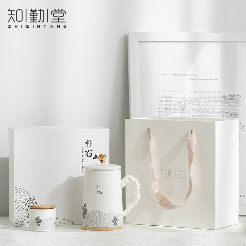 知勤堂 朴石办公杯带小茶罐礼盒包装