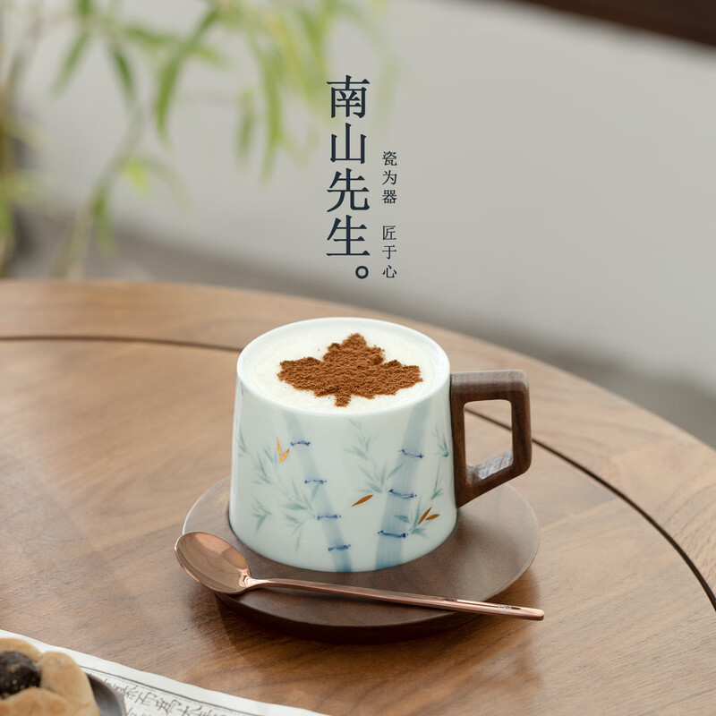 采用工学杯柄设计,持握舒心省力;手绘青竹于器,富有生机,清雅耐看;以白瓷为底,融手绘、斗彩、描金、烤花多重工艺