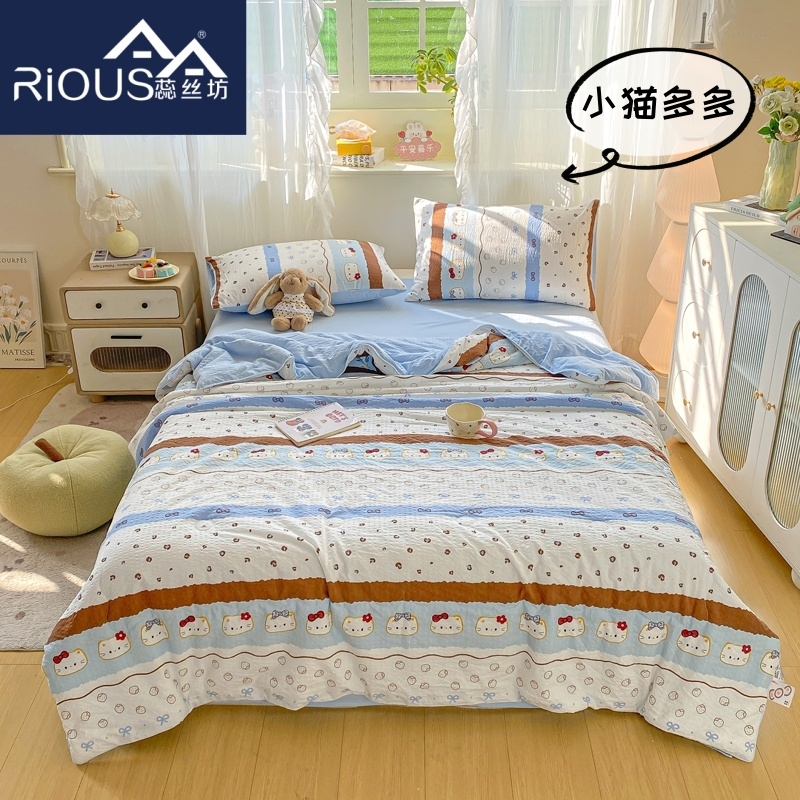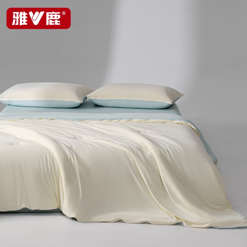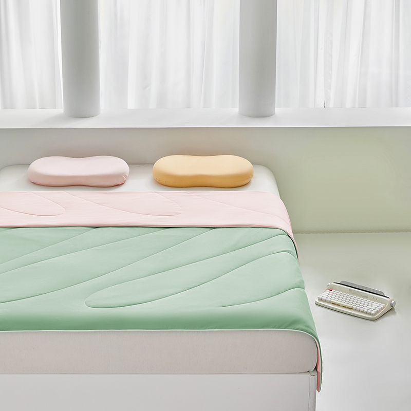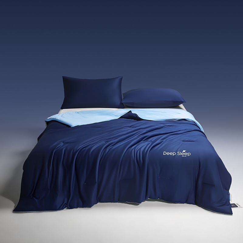 甄选黑科技锦氨凉感丝,清凉透气,不易闷热;填充整张细腻羽丝绒纤维,蓬松性好,亲肤细腻;新一代活性印染工艺,颜色靓丽,不易起球,不易褪色