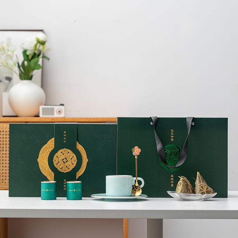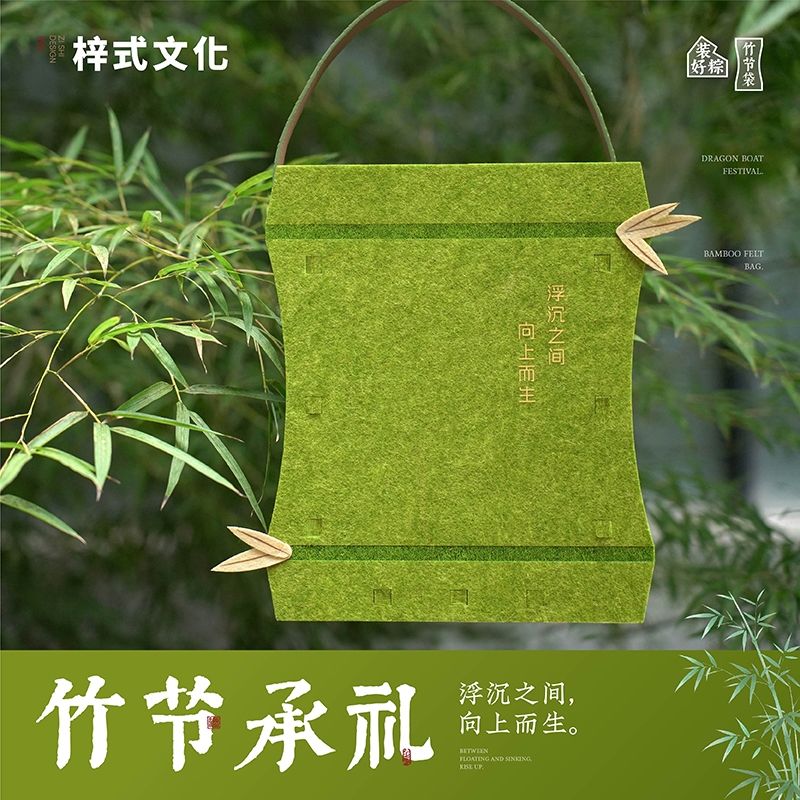原创竹形毛毡礼袋,灵感源于翠竹,简约雅致;礼袋选用毛毡材质,可重复使用;内空间充足,可放置6—8只粽子