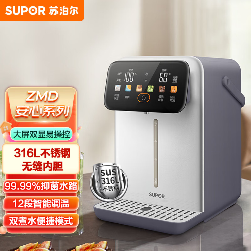 ¥ 336泡茶/喝水/烧水三合一,一机双杯盖,配备茶漏;隐藏式电源收纳线,户外、办公、居家都方便;1200ML大容量,满足家庭畅饮;双层不锈钢,外层304,内胆食品级316;10档温度调节,防干烧保护