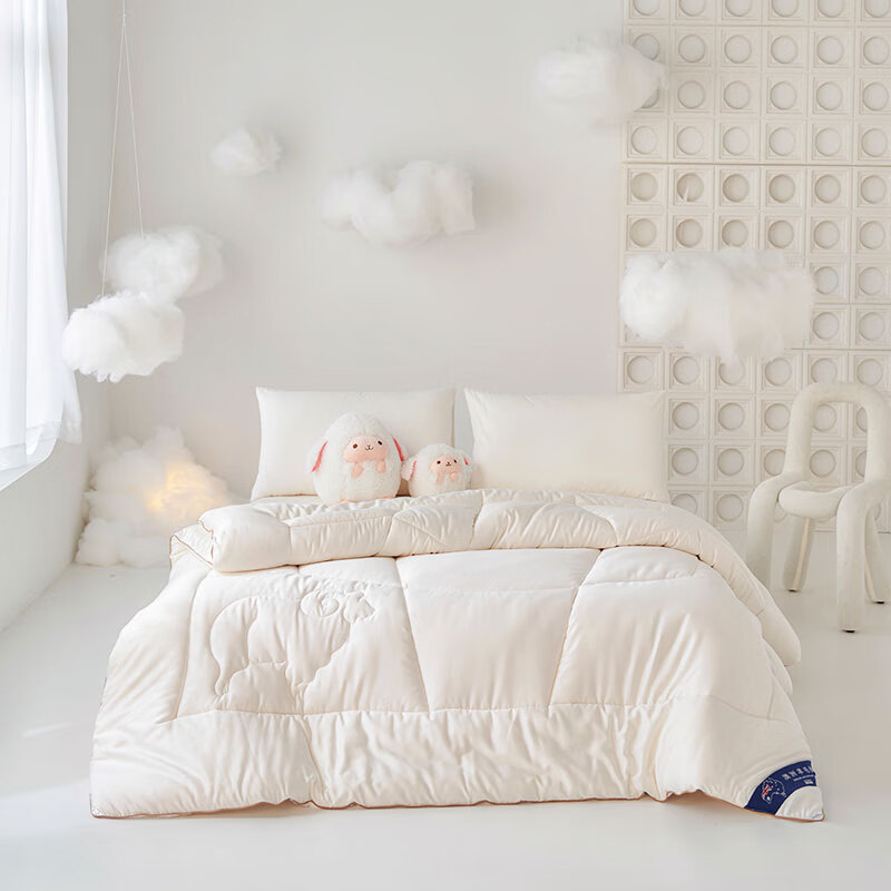 蚕丝被的纤维结构具有良好的保温效果;蚕丝被的质地轻盈柔软,触感丝滑;对于过敏体质的人士尤为适用有助于营造一个健康的睡眠