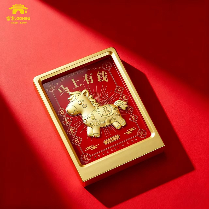宫礼小金马,马上有钱,马上暴富!;这只萌马说:愿你日日有钱,年年富余。;红盒藏金,马到成功,把财运直接带回家。