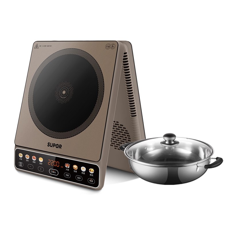 193mm双层大线圈盘,加热面积更大更均匀;配赠26cm304不锈钢汤锅,美味随心享;11英寸大彩屏,内置菜谱,八大功能,一触即达