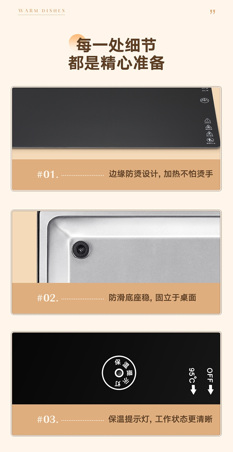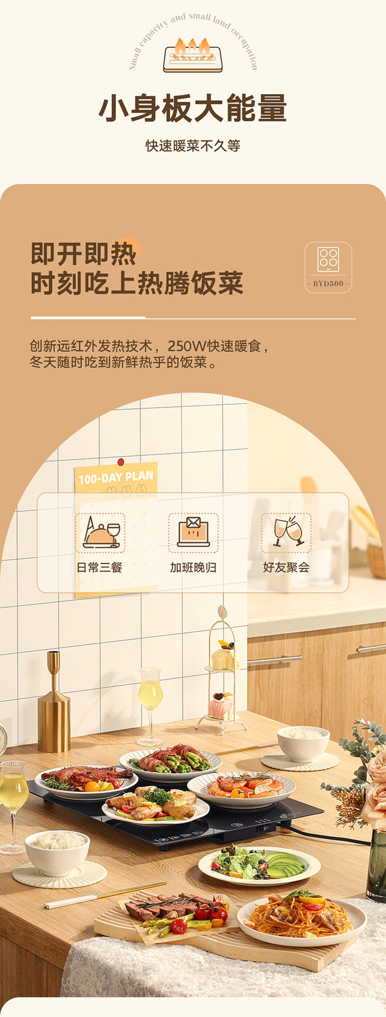 红外线锁热,保温更持久 保温板上形成单向热能循环;锁住营养和水份,保持鲜美口感;无惧寒冷,畅快享受热腾腾的美味
