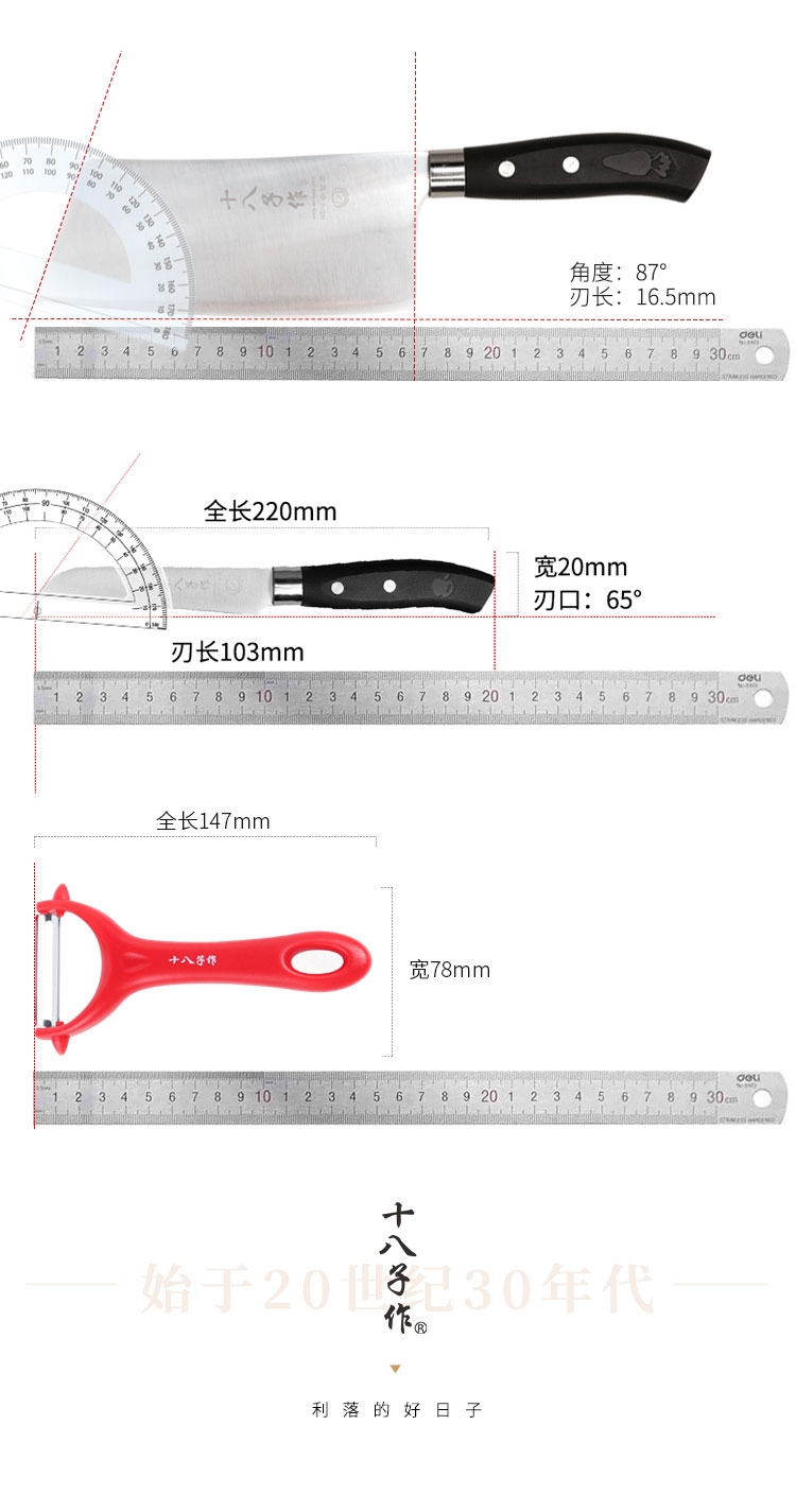 规格:小切刀170*75*1.8mm,水果刀103*22*1.5mm、瓜刨147mm