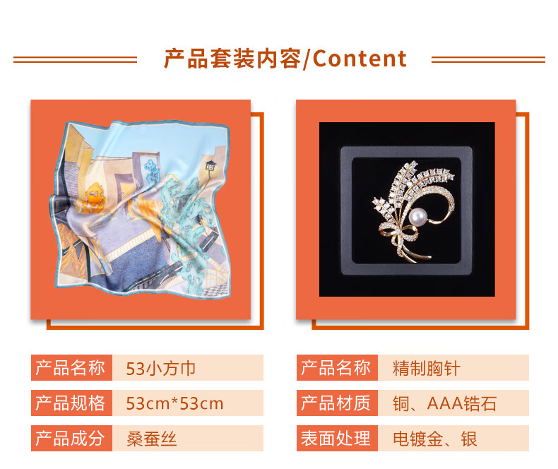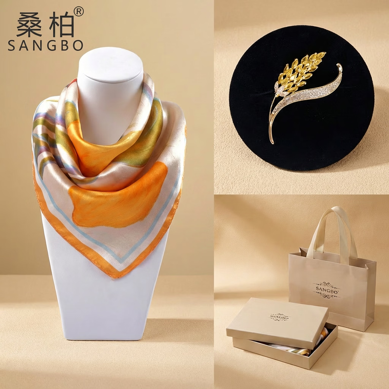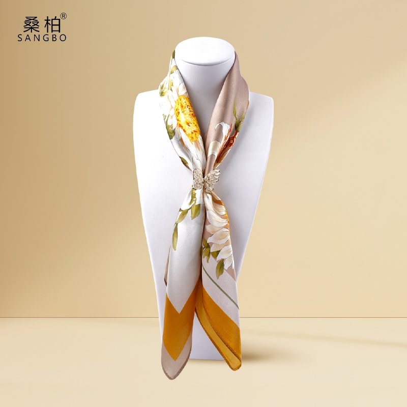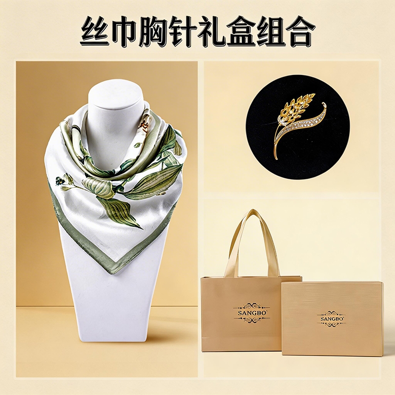 桑柏 桑蚕丝丝巾53单面胸针套装礼盒DMXZ