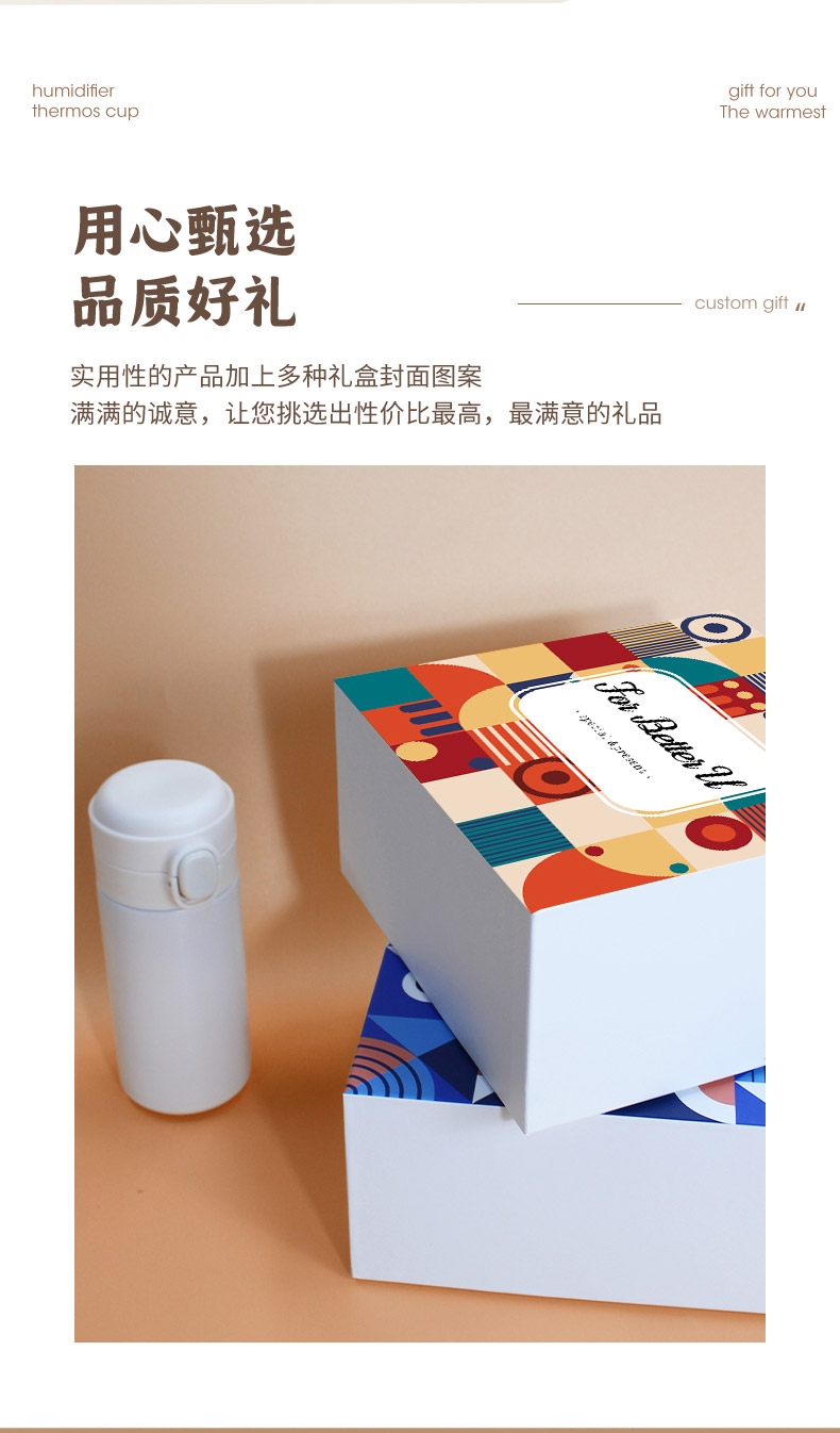保温杯 + 加湿器套装,办公出行双份贴心;艺术撞色礼盒,颜值拉满,自用送礼都合适;迷你便携设计,随时补水 + 喝热饮