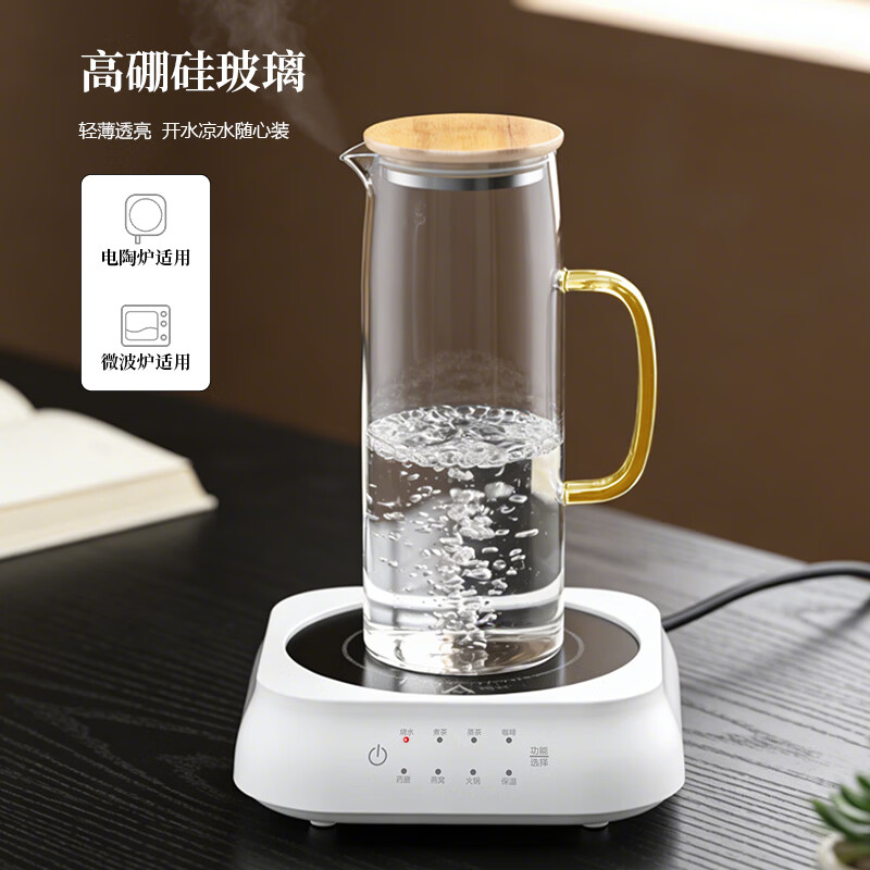 100%纯净的高硼硅玻璃;工艺采用纯手工吹制一体成型,耐温180°;壶盖采用食品级304不锈钢楠竹材质,健康环保;适用于饮茶、果茶、花茶等