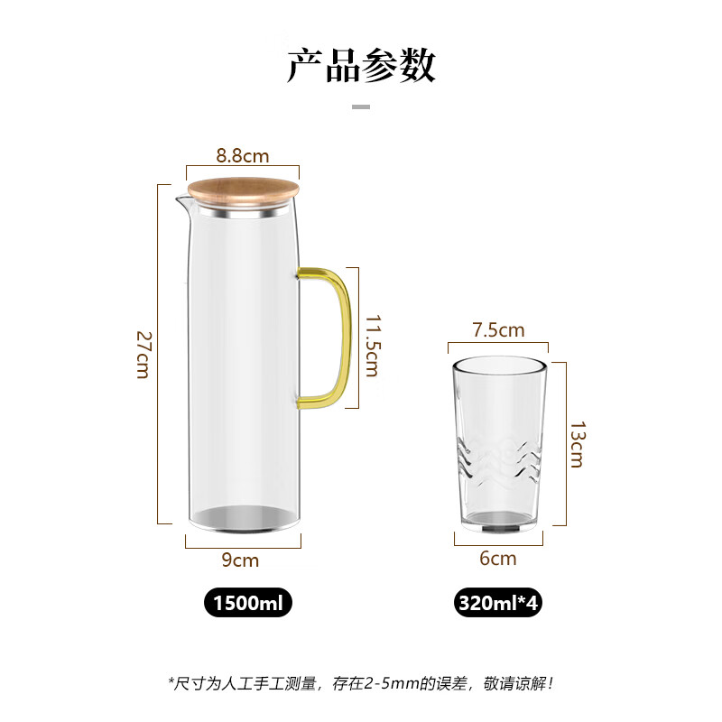 配置清单:水杯4只,凉水壶1个