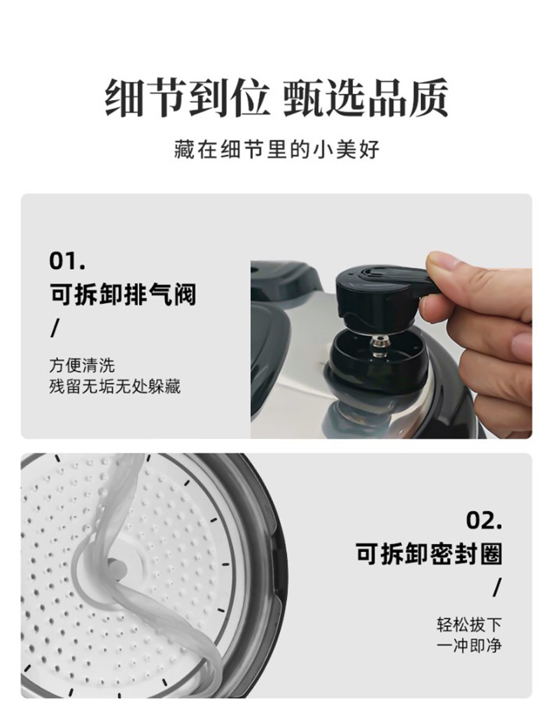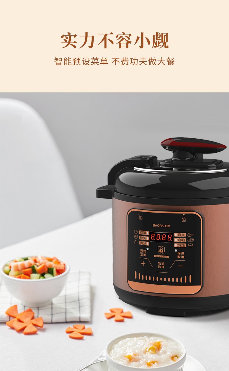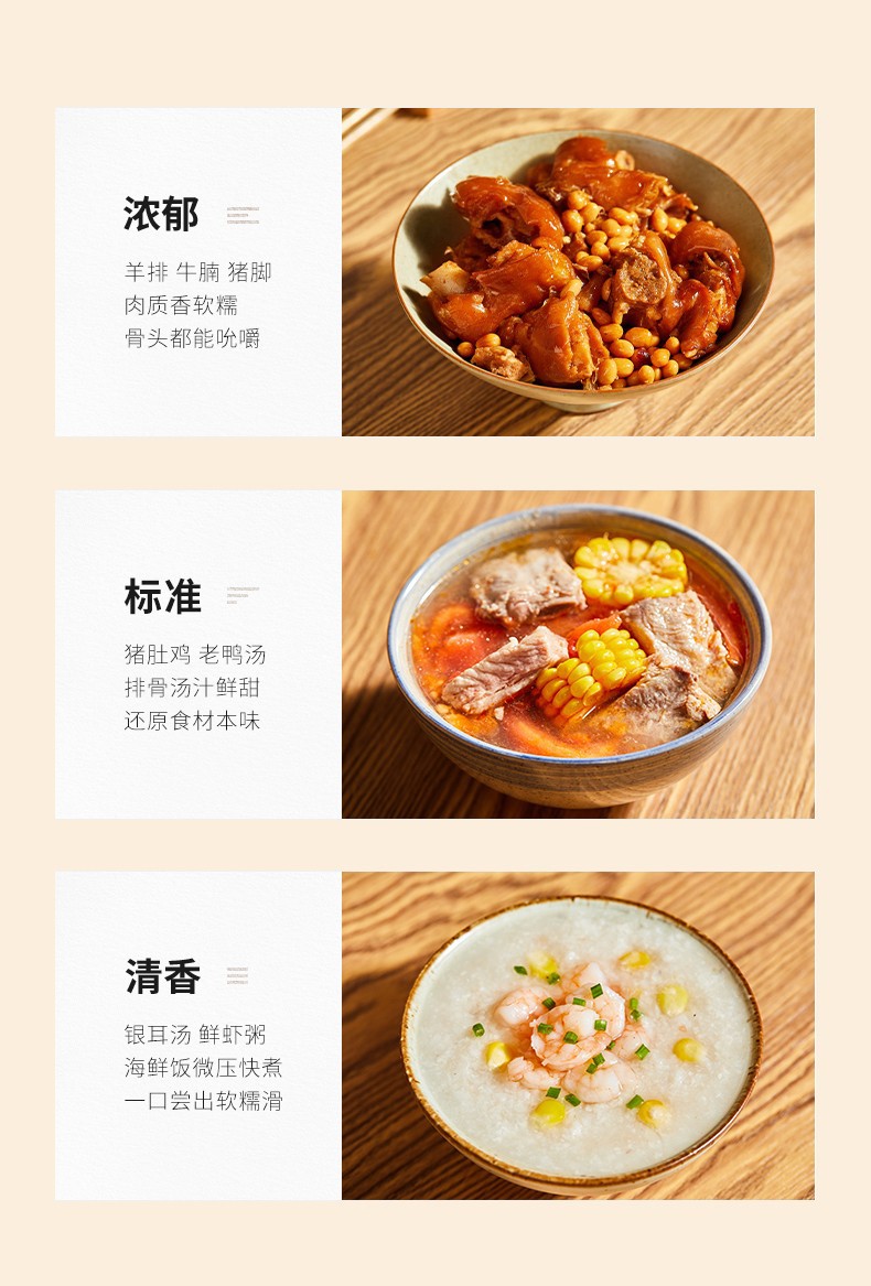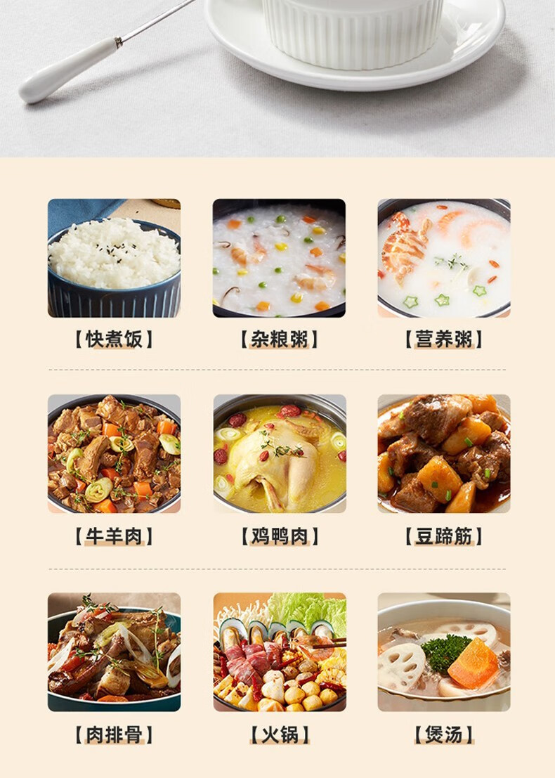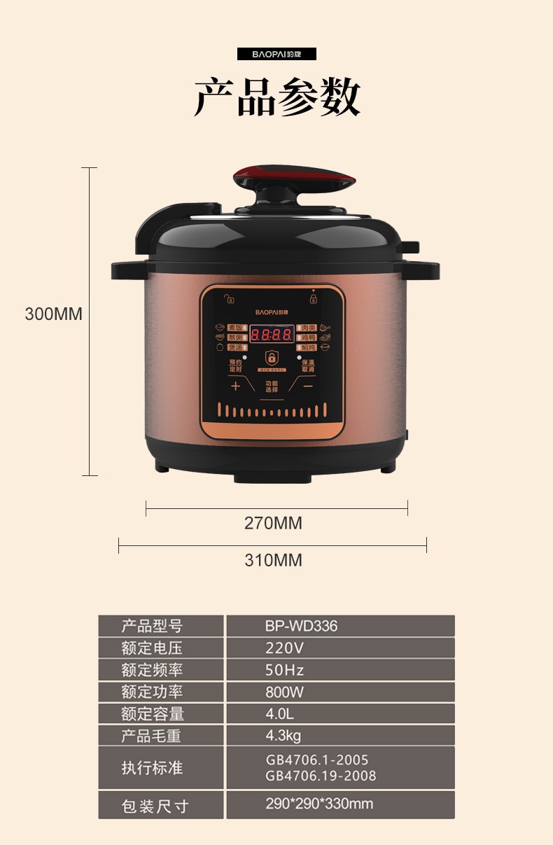4L大容量,满足一家日常所需;LED大屏显示,10大安全保护;24小时定时预约功能,无需看管