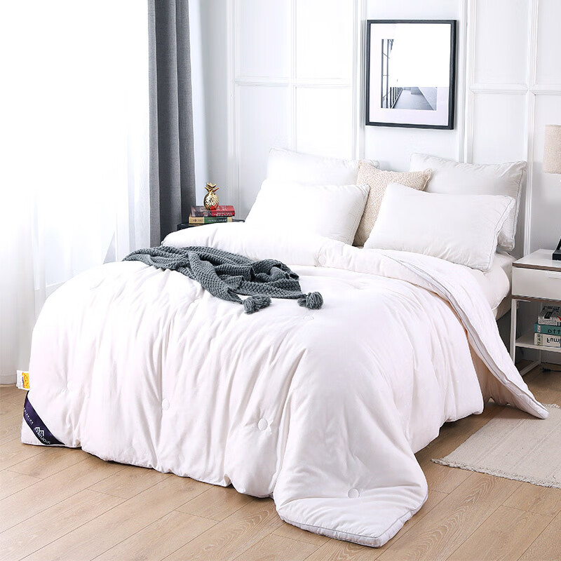 立体包边的设计,让被子更显饱满厚重和美观;填充物用80%的超细纤维和21%的大豆纤维黄金配比;保持了棉的舒适度,具有高弹性、蓄热保暖性强;透气性好、轻盈、吸汗防潮、柔软舒适和蓬松度好的特点