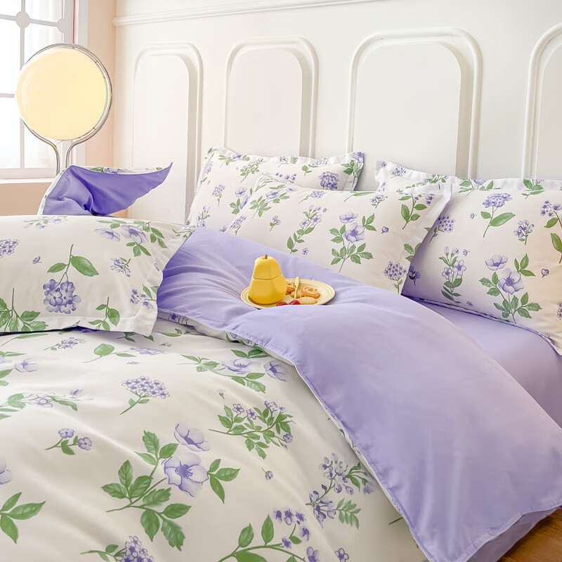 亲肤斜纹面料,触感细腻柔软;手感软糯亲肤适合裸睡;机洗色彩靓丽如新