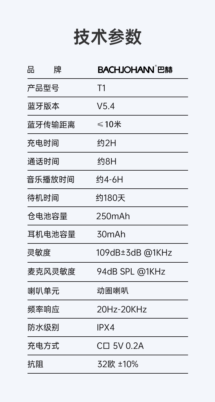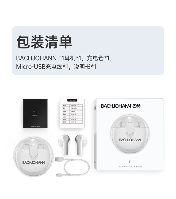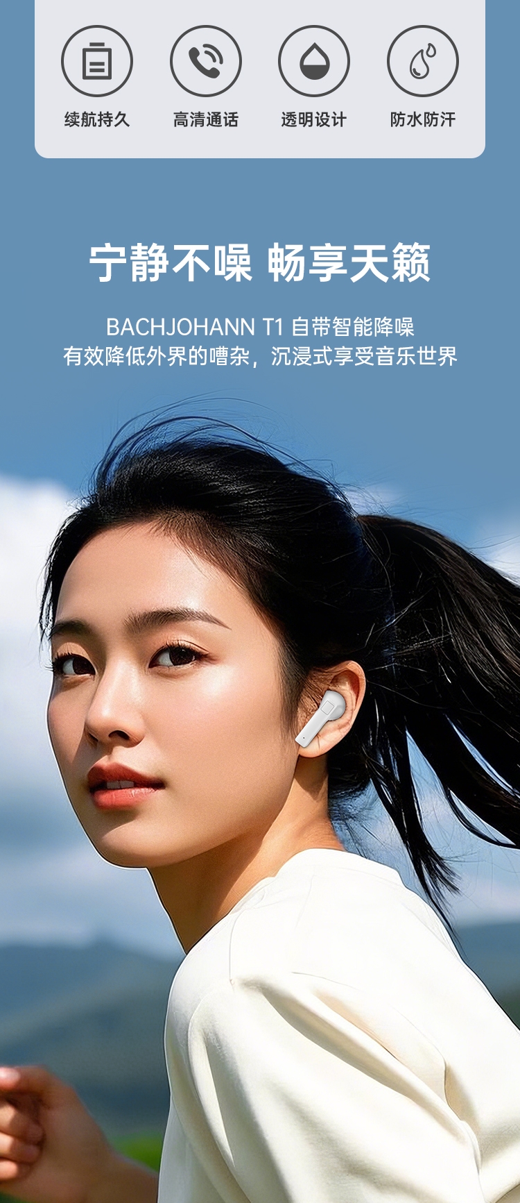 巴赫约翰 智能降噪真无线蓝牙耳机T1