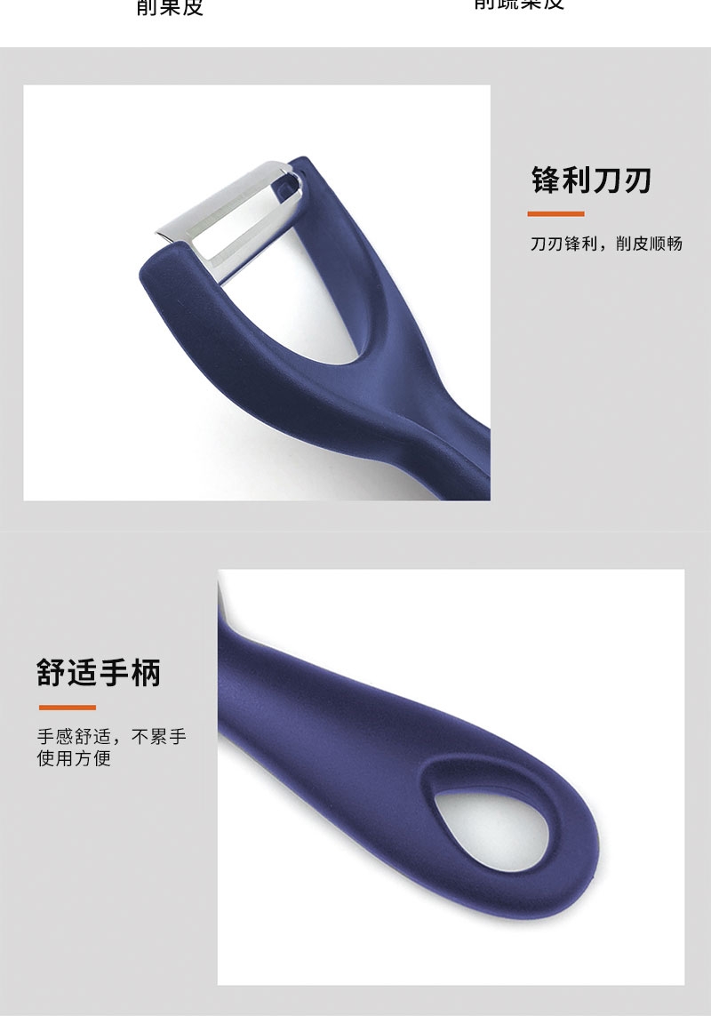 剪刀:锋利耐用,剪食材、开包装都顺手,省力手柄握感;削皮器:弧形刀片贴合果蔬曲面,削果皮又快又干净;牛皮环保纸盒包装