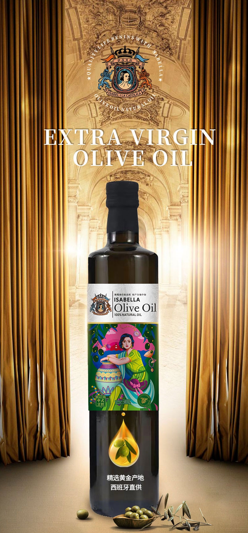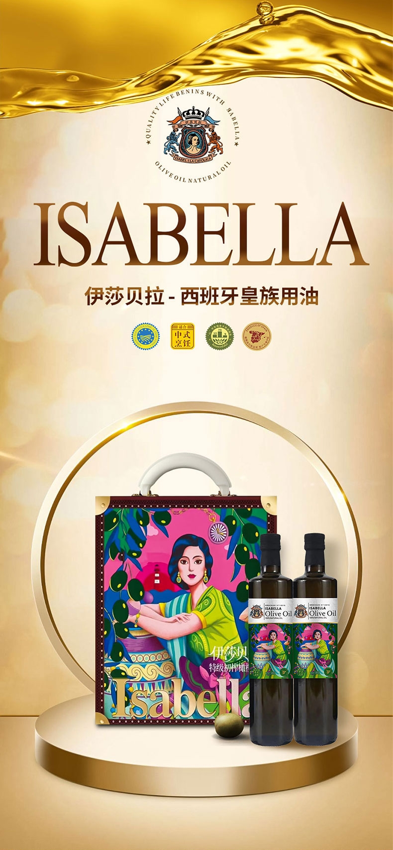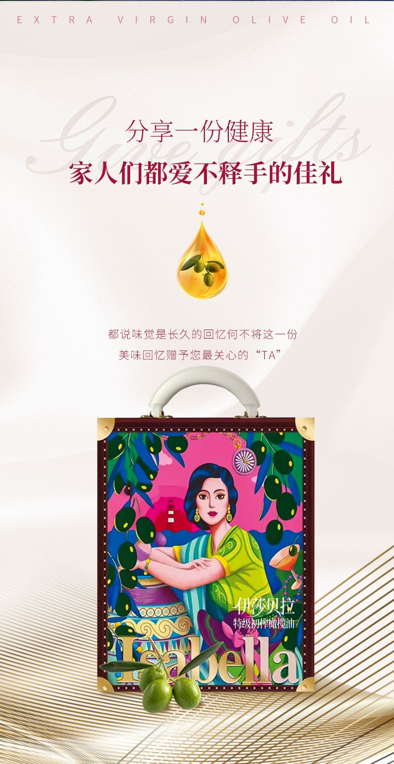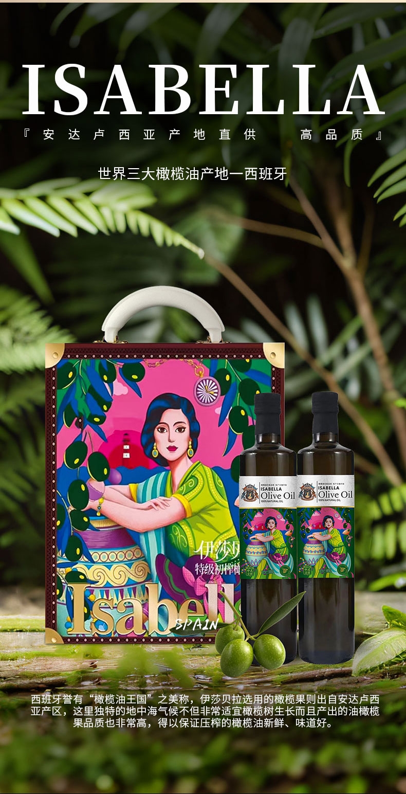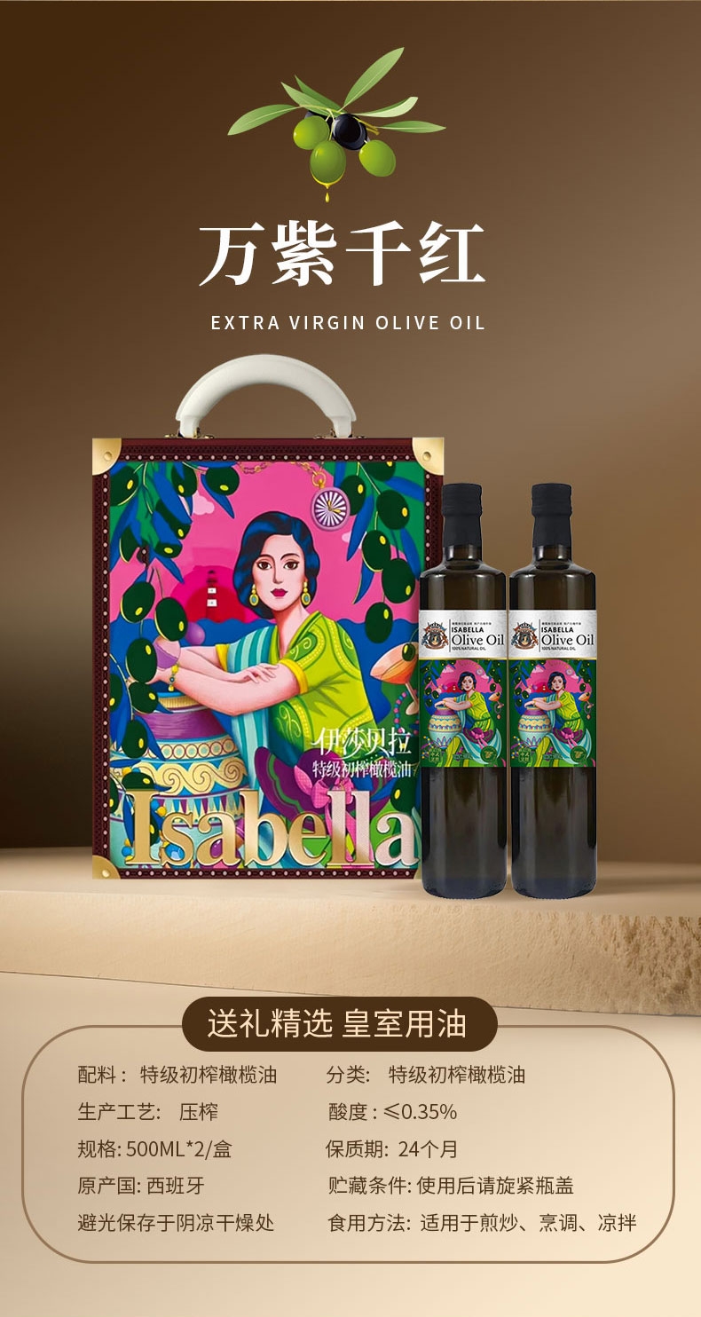 伊莎贝拉 纯正特级橄榄油礼盒500ml*2瓶