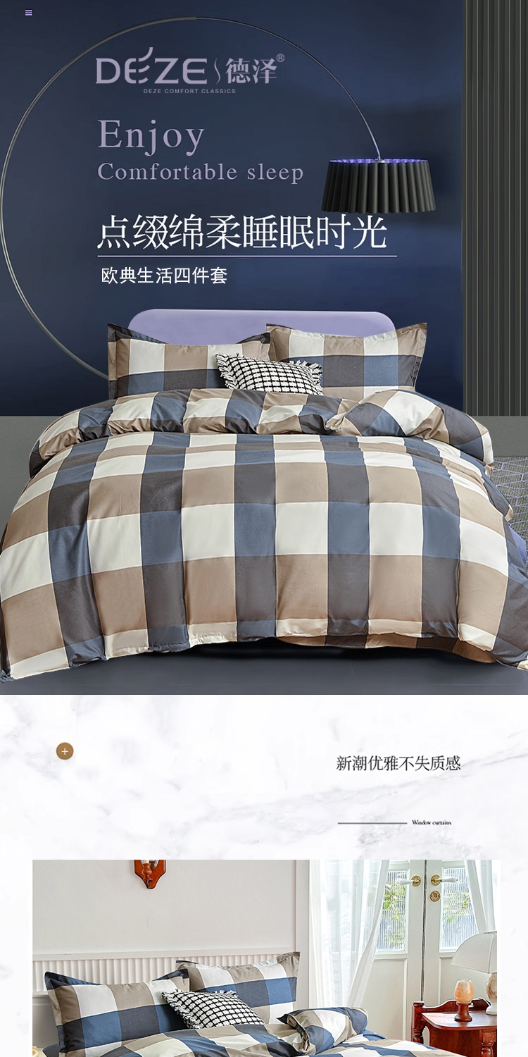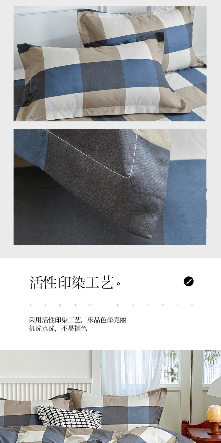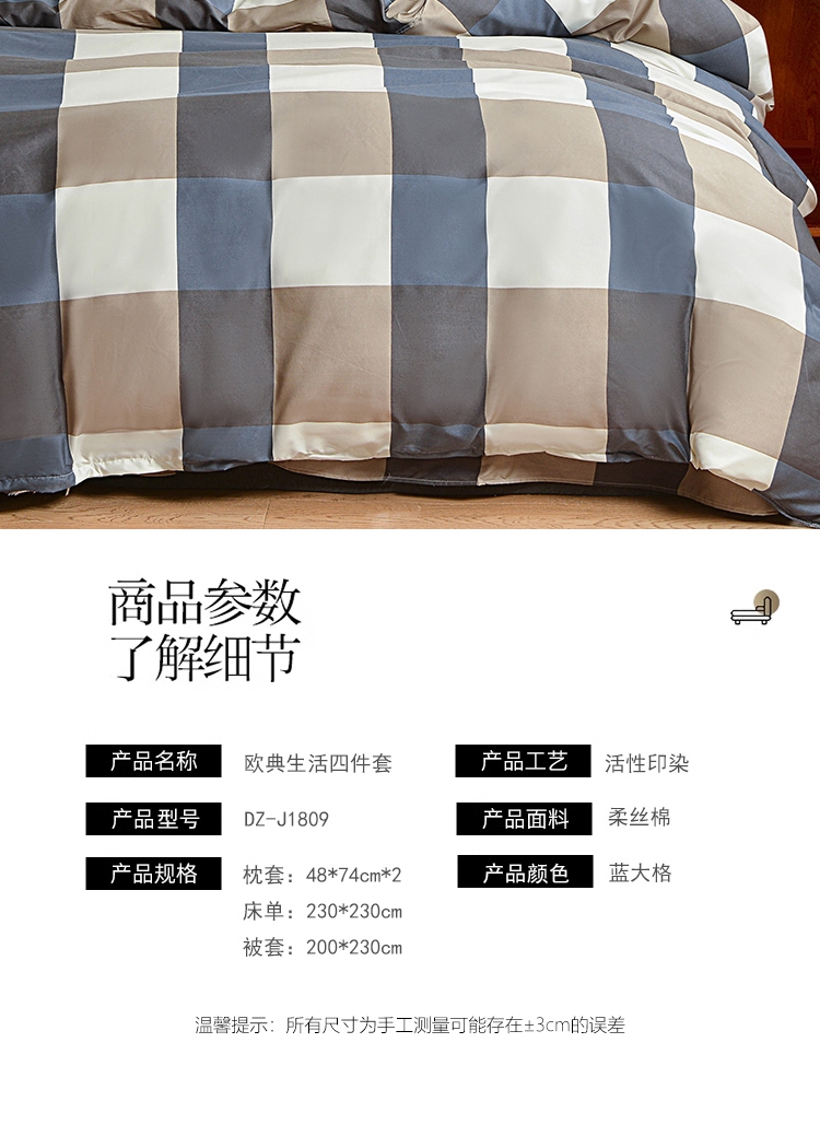 德泽 欧典生活四件套蓝大格DZ-J1809