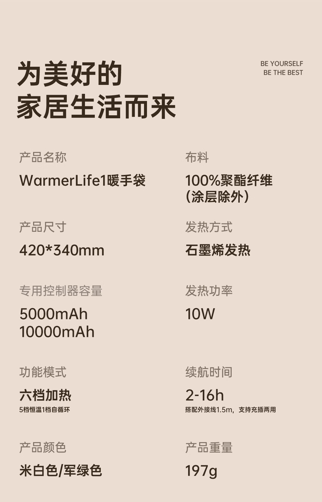 几素 棉暖手袋米色5K毫安HW09