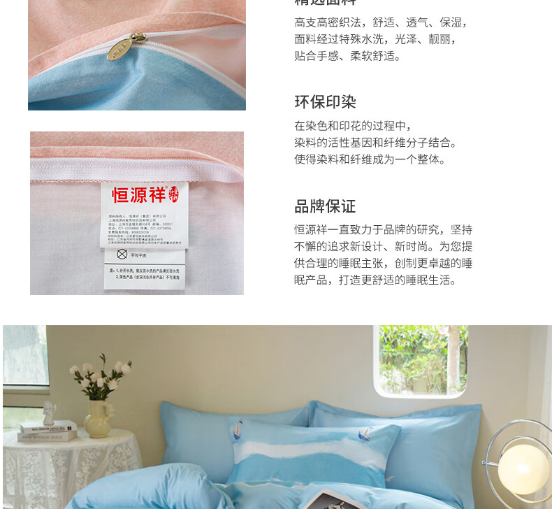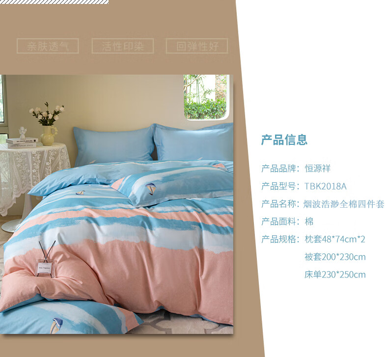 恒源祥 四件套纯棉烟波浩渺TBK2018A