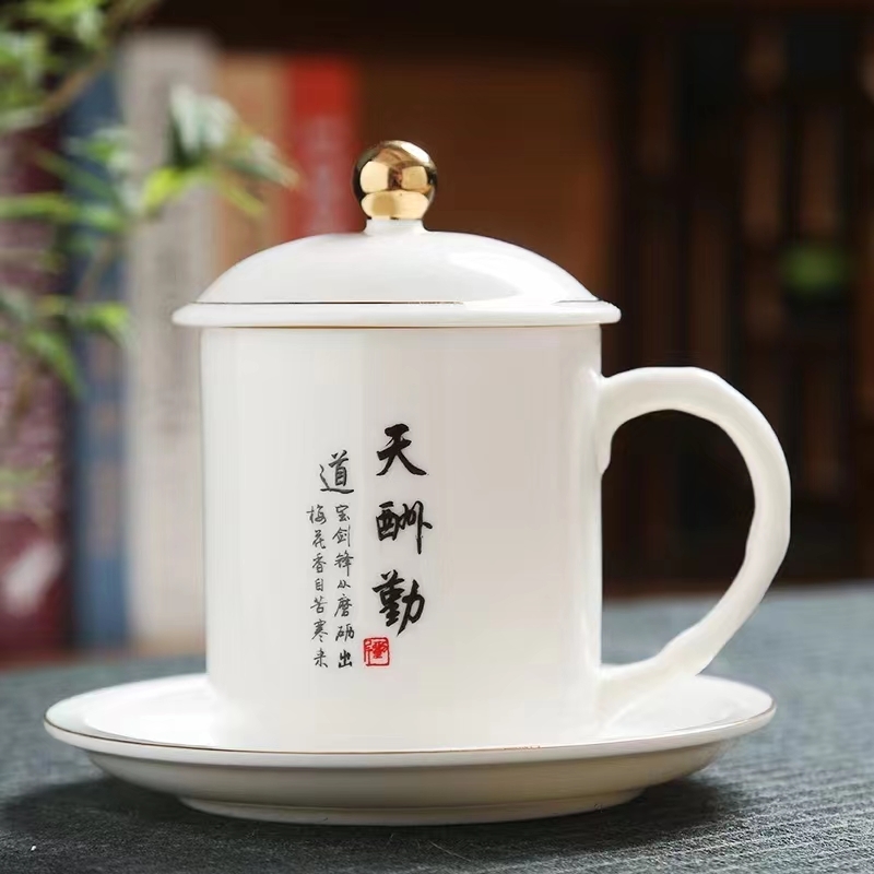 瓷语花香 羊脂玉办公杯XWD362