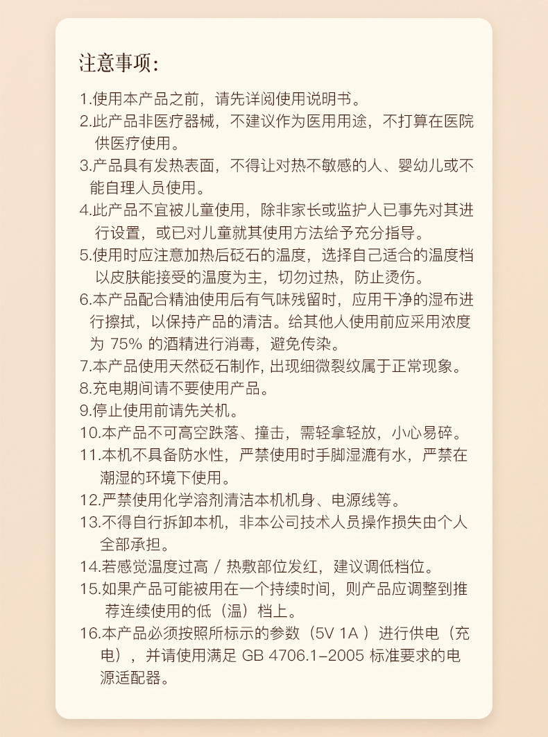 配置:砭石推刮棒(含铭牌、磨砂袋)×1(个),充电线(含磨砂袋)×1(条),说明书×1(本),合格证×1(张),彩盒(含内托)×1(套),精油*6