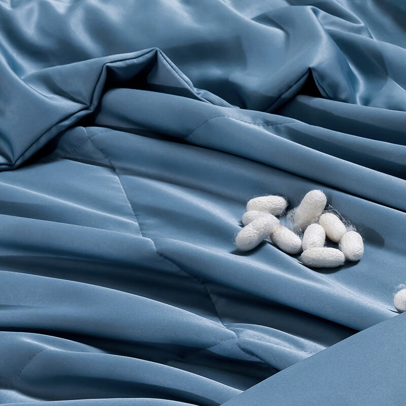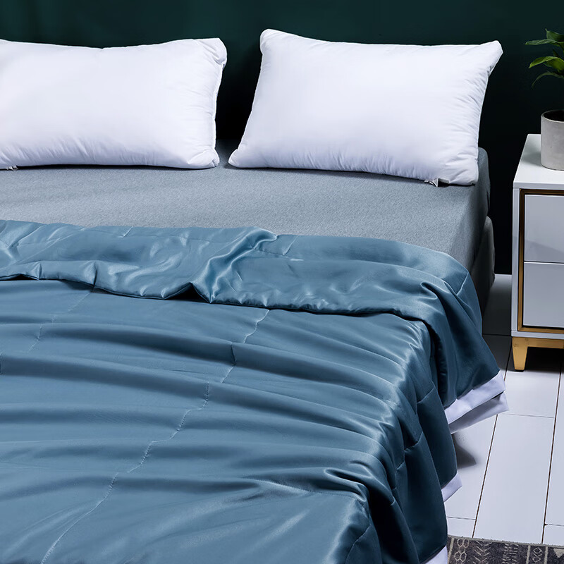 面料采用冰丝面料的吸湿性,符合人体皮肤的生理要求;具有光滑凉爽、透气、抗静电、防紫外线,色彩绚丽;染色牢度较好等特点 。其具有棉的本质,丝的品质;冰凉丝滑,透气性好,贴身不粘腻;填充更是采用100%蚕丝填充
