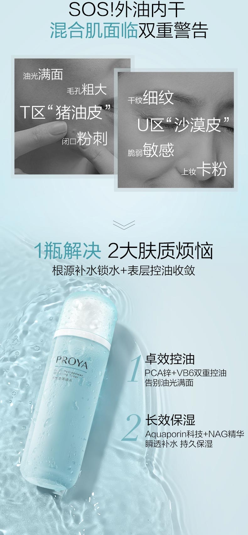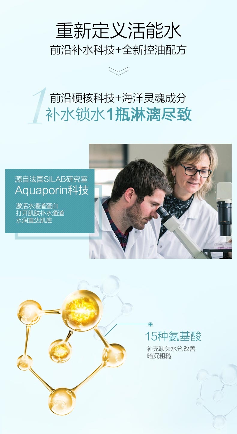快速补水 清爽控油;深入补水锁水+表层控油收敛;前沿补水科技+全新控油配方