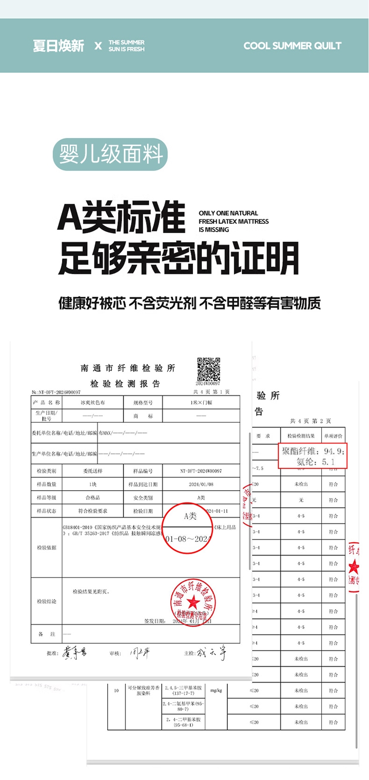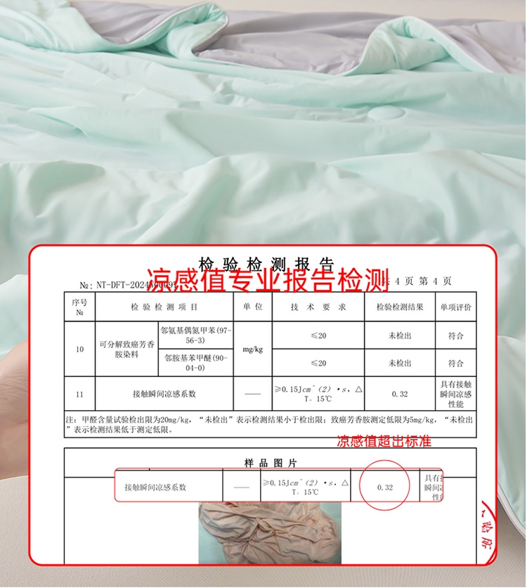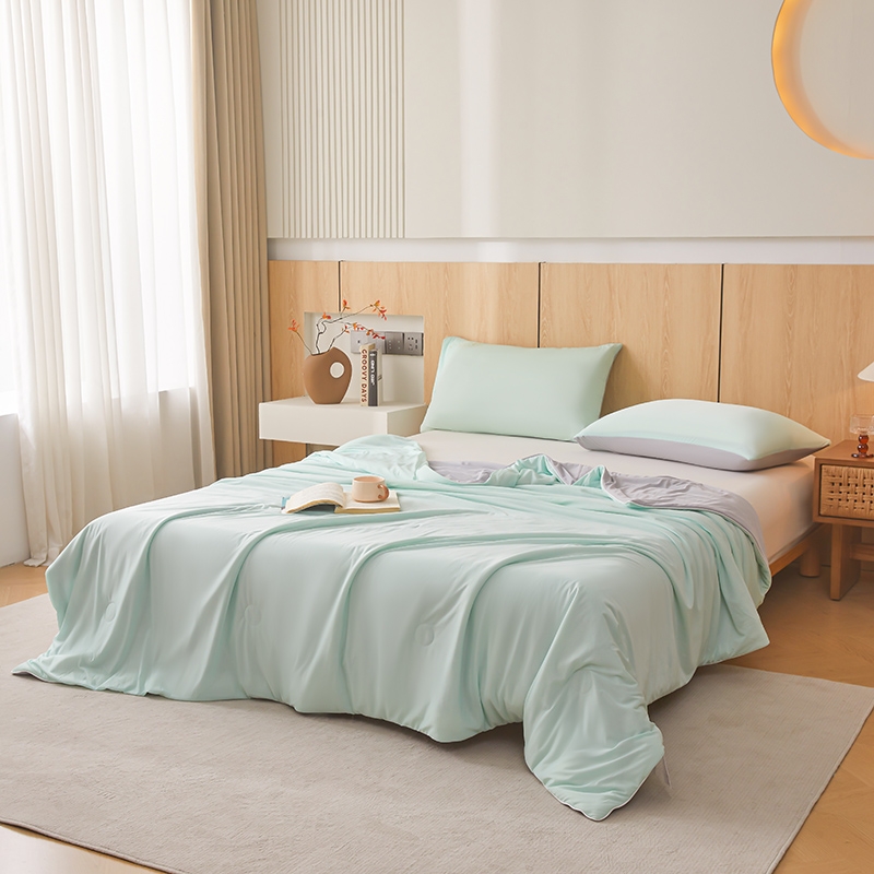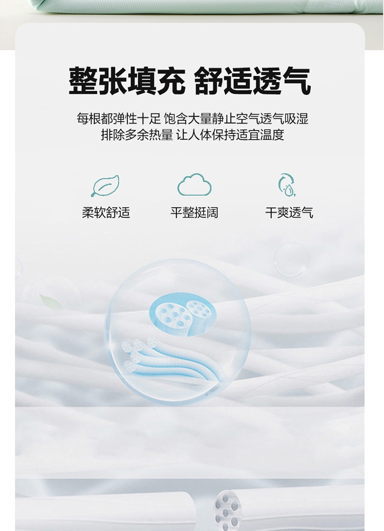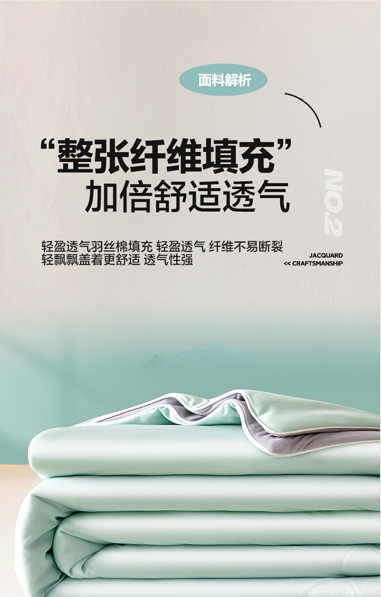 A类凉感丝面料 0甲醛 0 荧光剂 0芳香胺;拥有较好的柔软性透气性,吸水性;精致绗缝,可手洗可机洗