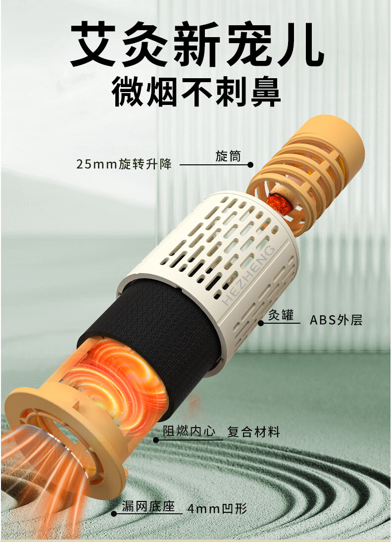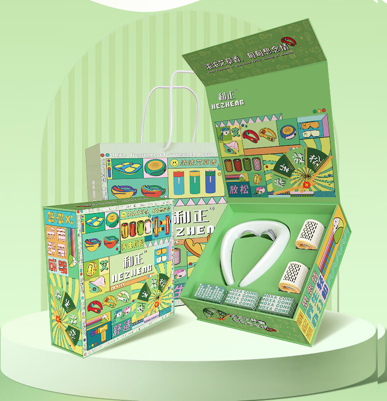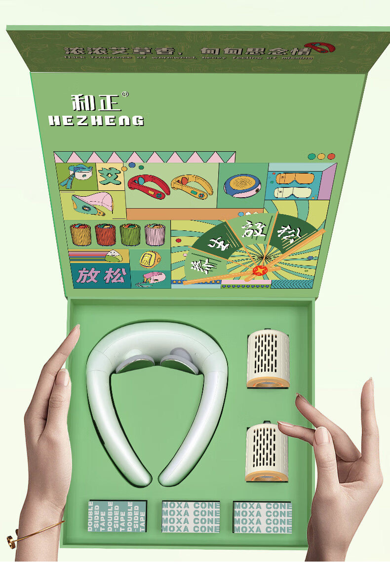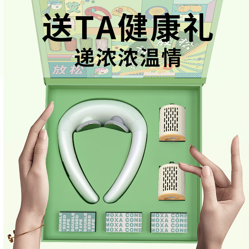 配置:1个脉冲波颈椎按摩仪 +2个艾灸罐+20个艾柱+20个胶贴
