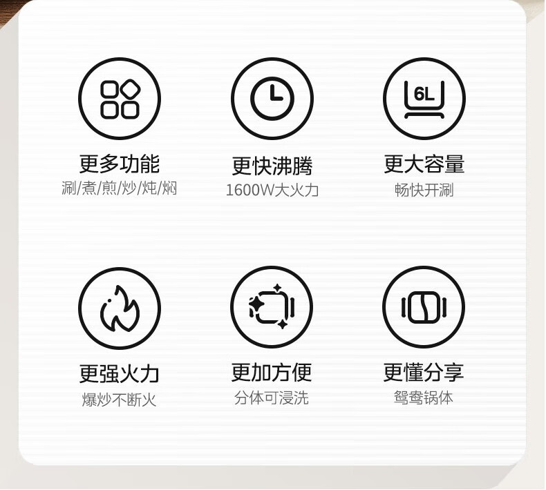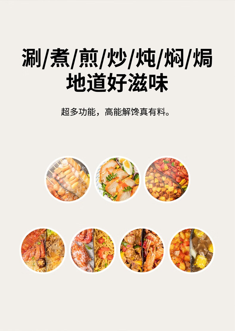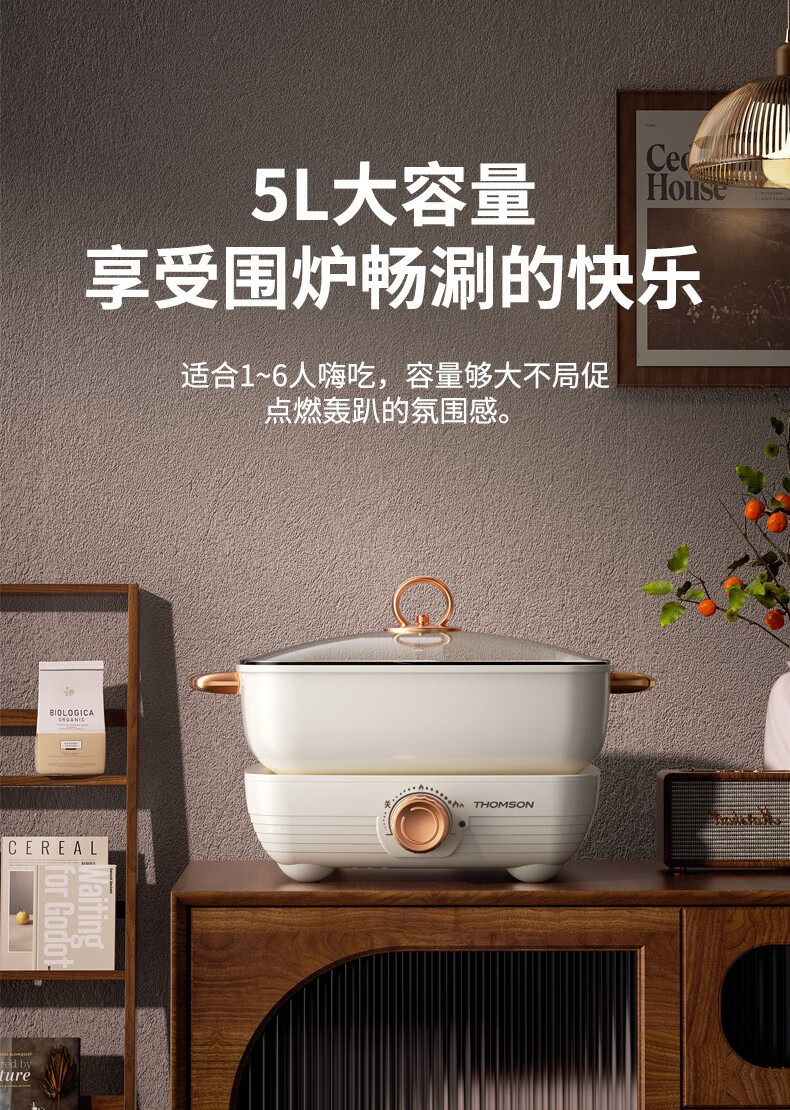 鸳鸯双味欢乐享畅享嗨吃放肆涮;1600W大火力更快沸腾;5L大容量Hous享受围炉畅涮的快乐