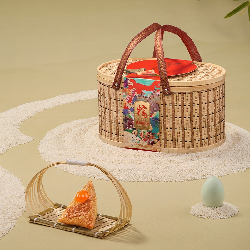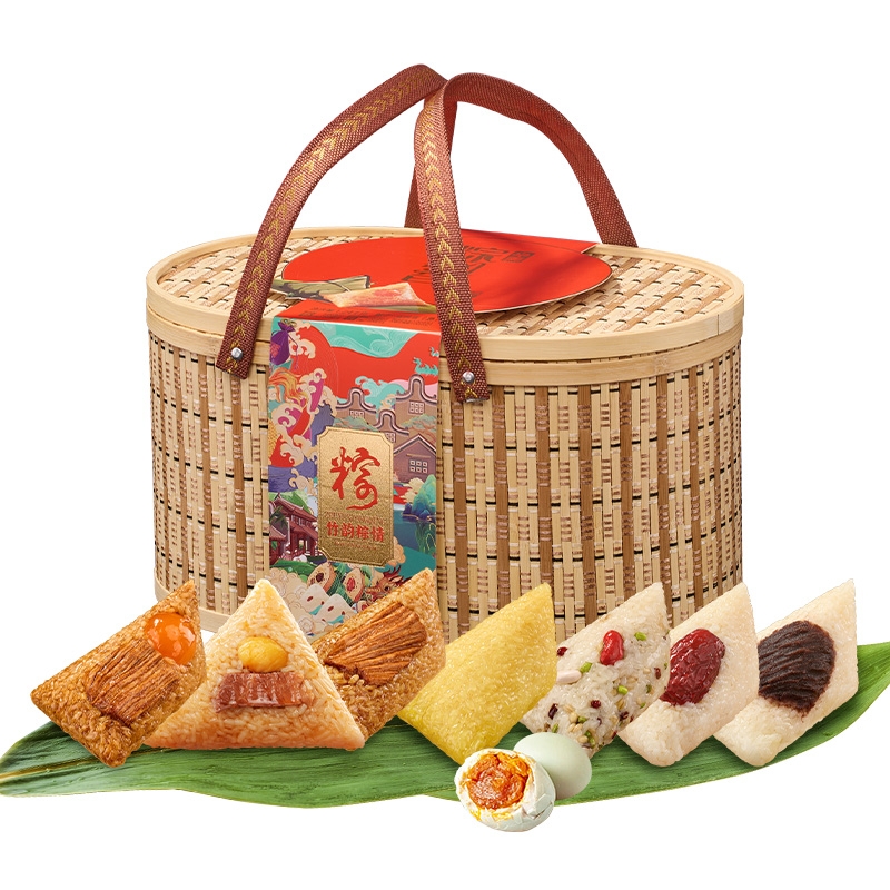 高端竹篮,;赠礼牌面 臻选七味,一次满足;香甜软糯