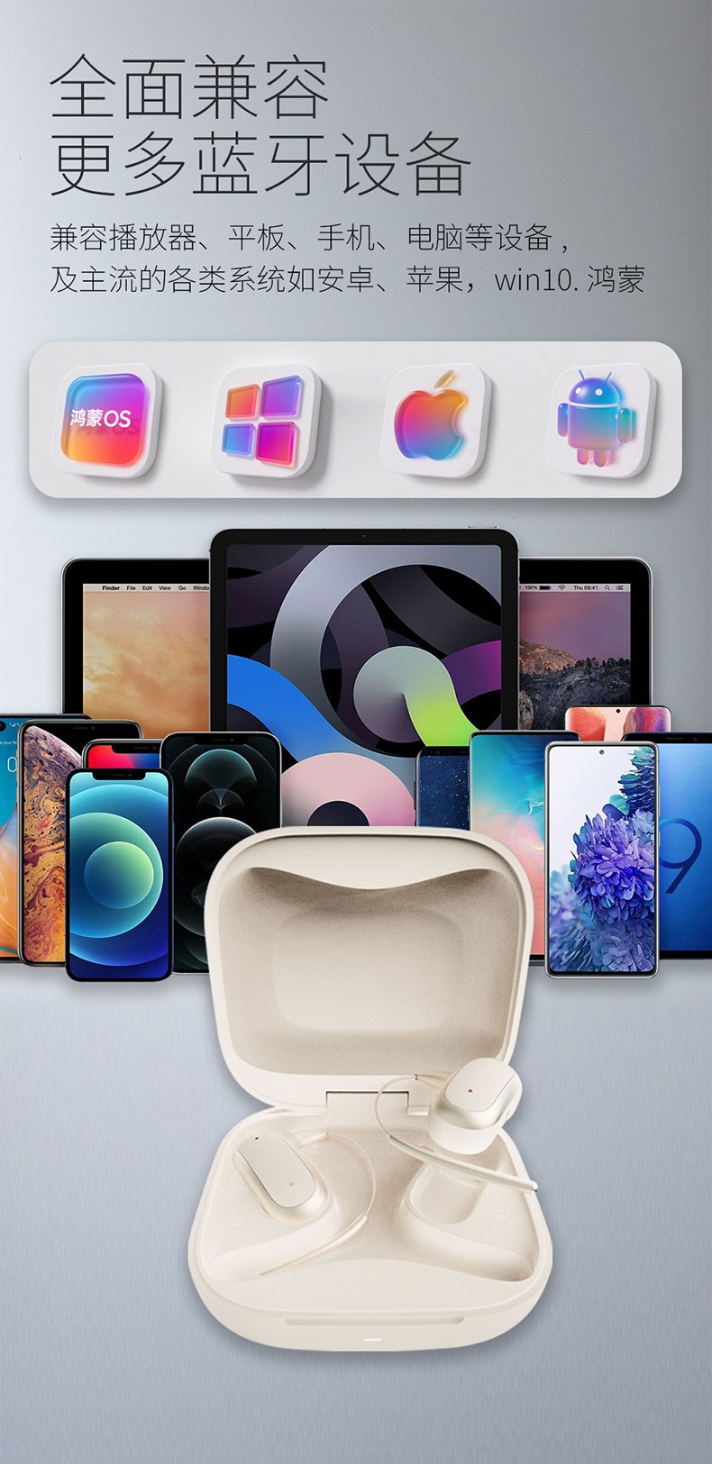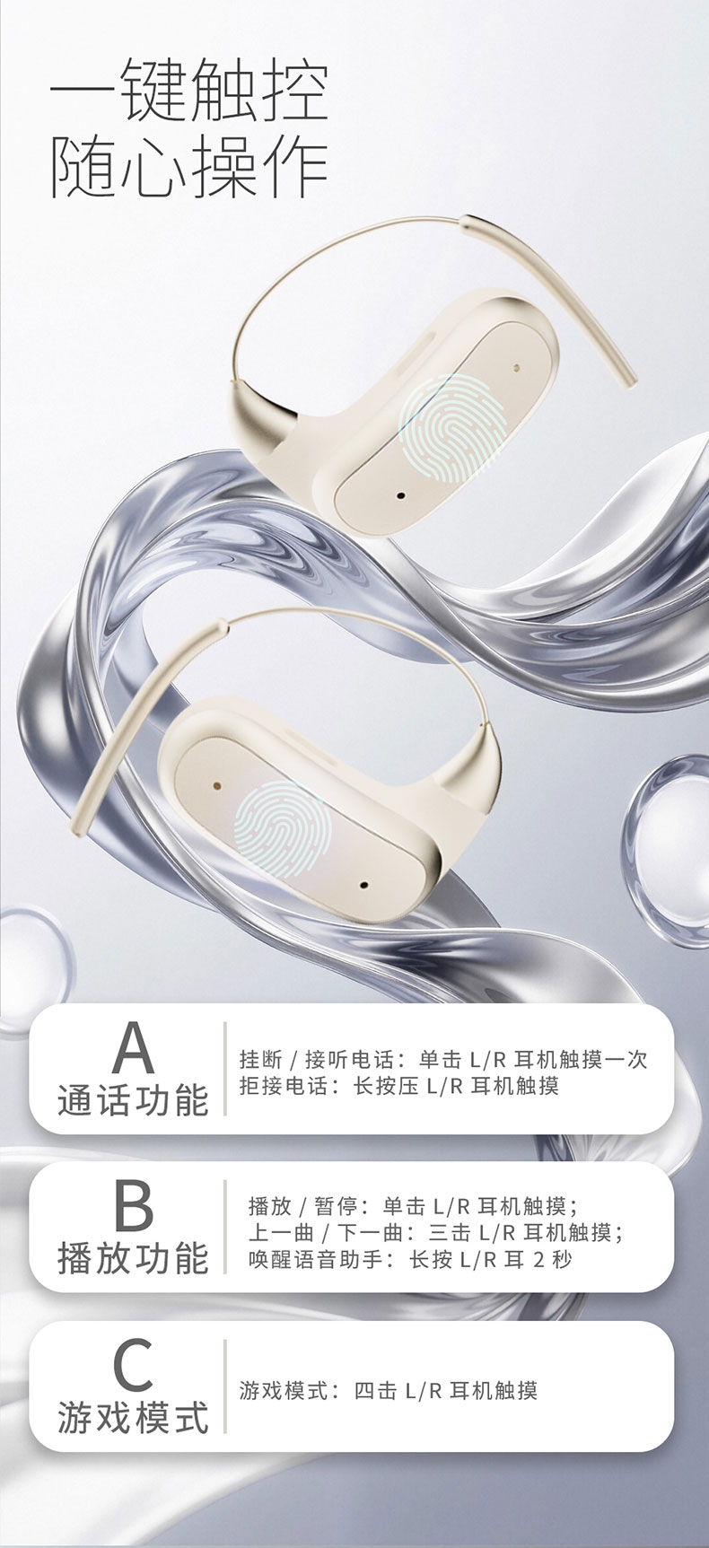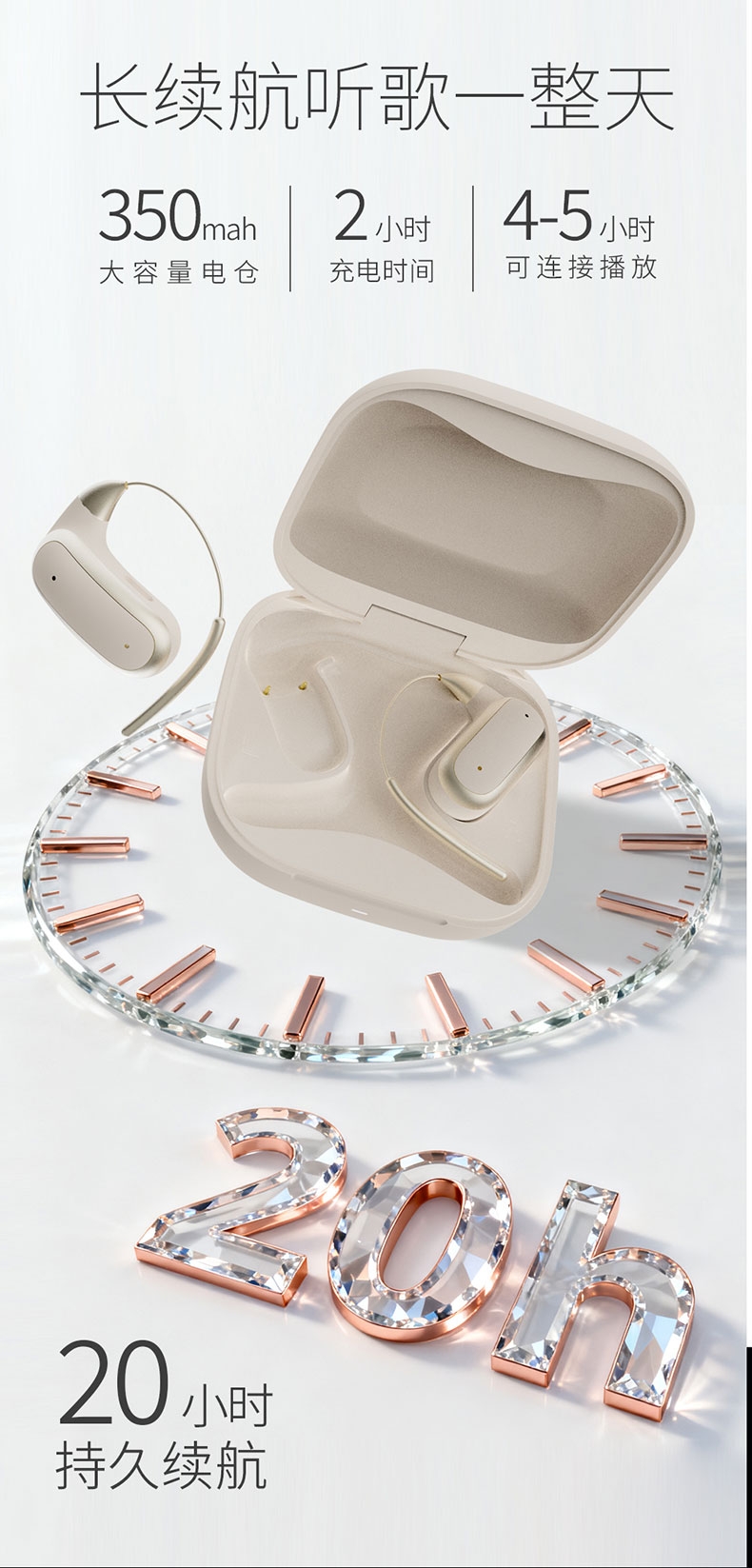 航空记忆钛丝、不仅舒适而且稳固;360°立体、全景环绕音、Hi-Fi无损音质;全芯升级蓝牙V6.0、急速连接 稳如有线;精准传音、不漏音、灵感耳挂,贴合耳道;低延时,轻松听声辩位,燃嗨全场,畅快游戏