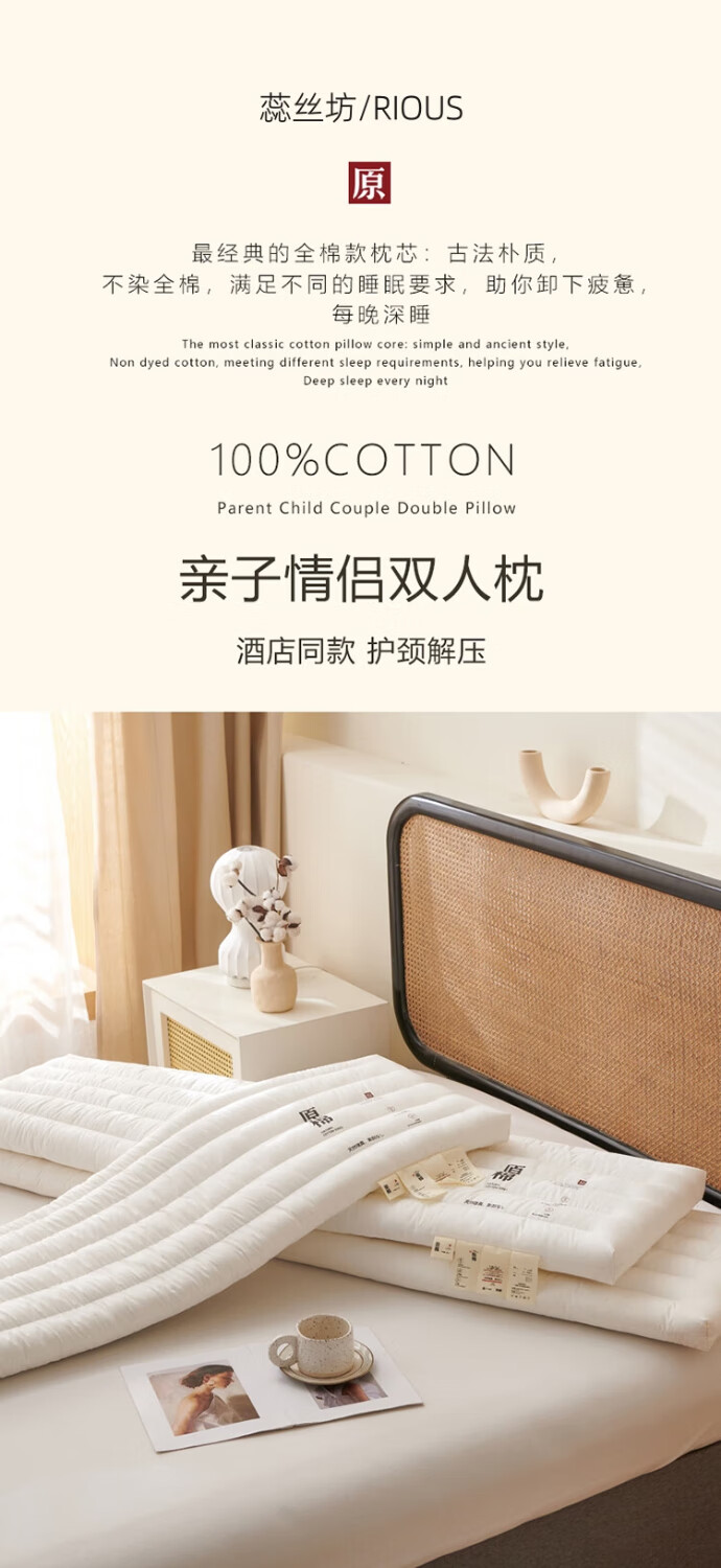 蕊丝坊 原棉羽丝绒慢回弹护颈双人超长枕