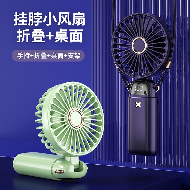 五档风力 随心调节;迷你可爱 方便携带; 挂脖式设计 舒适无感释放双手 ;网罩可拆卸设计 定时清洗更干净; LED实时显示 电量风速直观感受