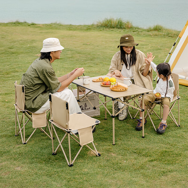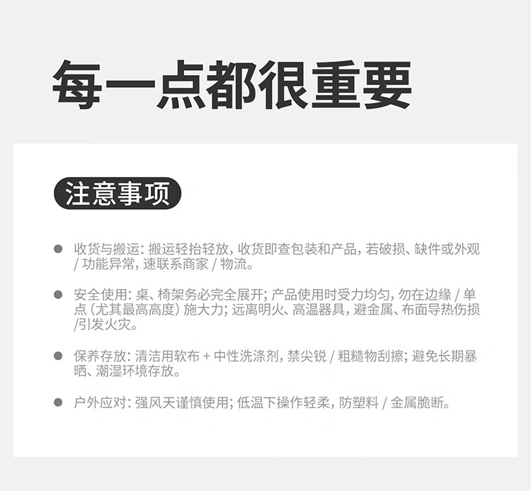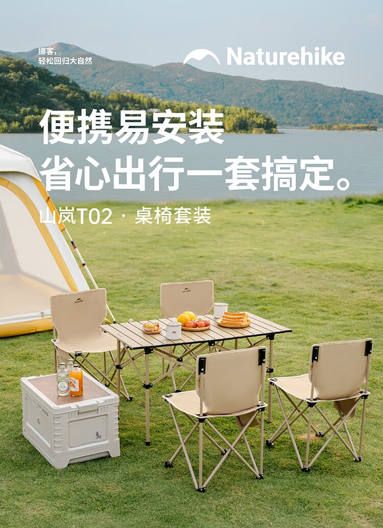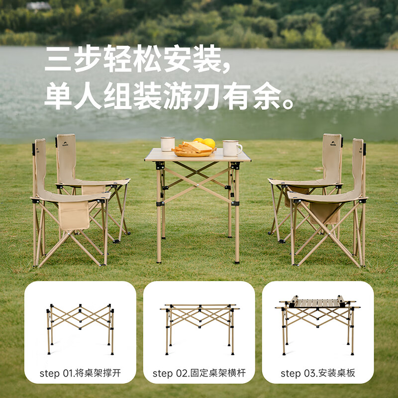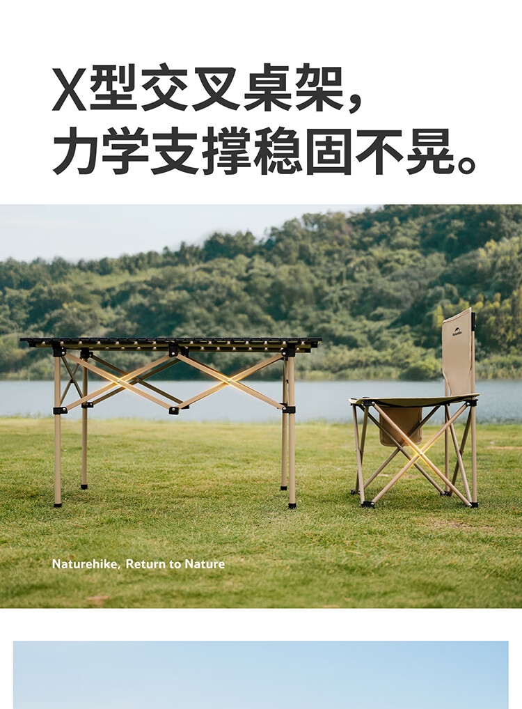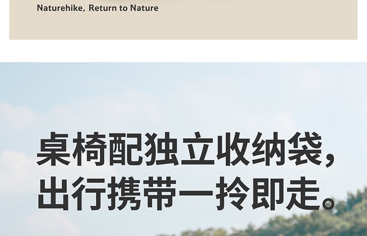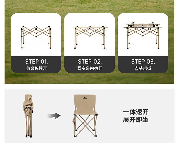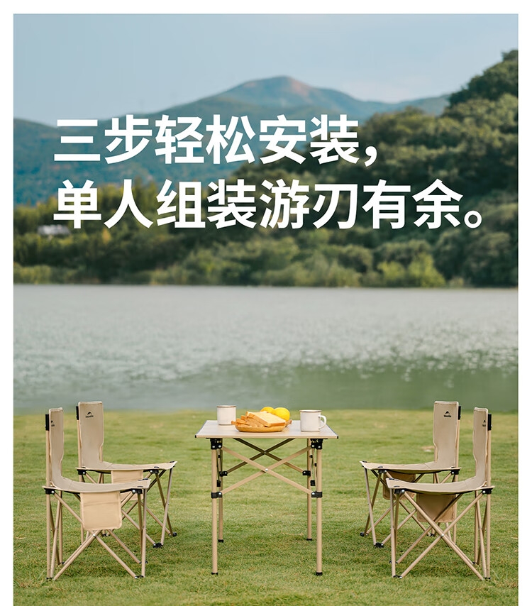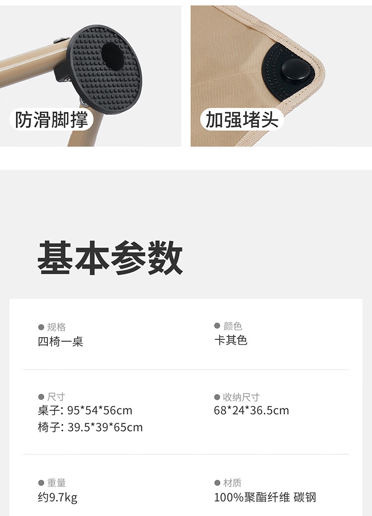 便携易安装,省心出行一套搞定。;加高椅背设计,X型交叉桌架,易清洁桌面;300斤强承重,放置重物稳如泰山。