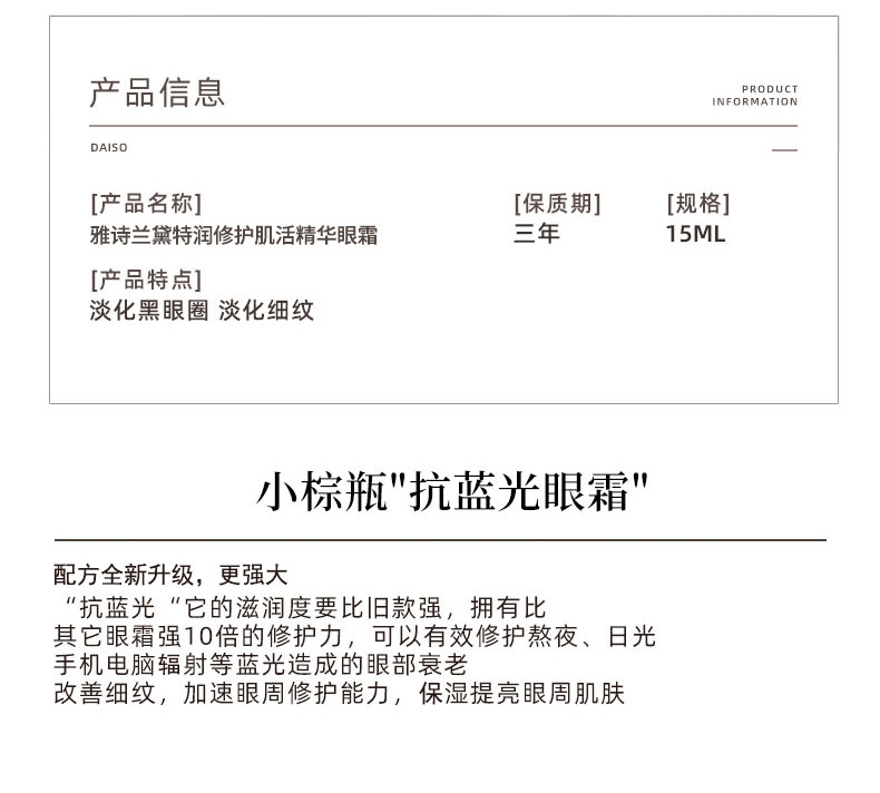 配置清单:雅诗兰黛小棕瓶抗蓝光眼霜15ml
