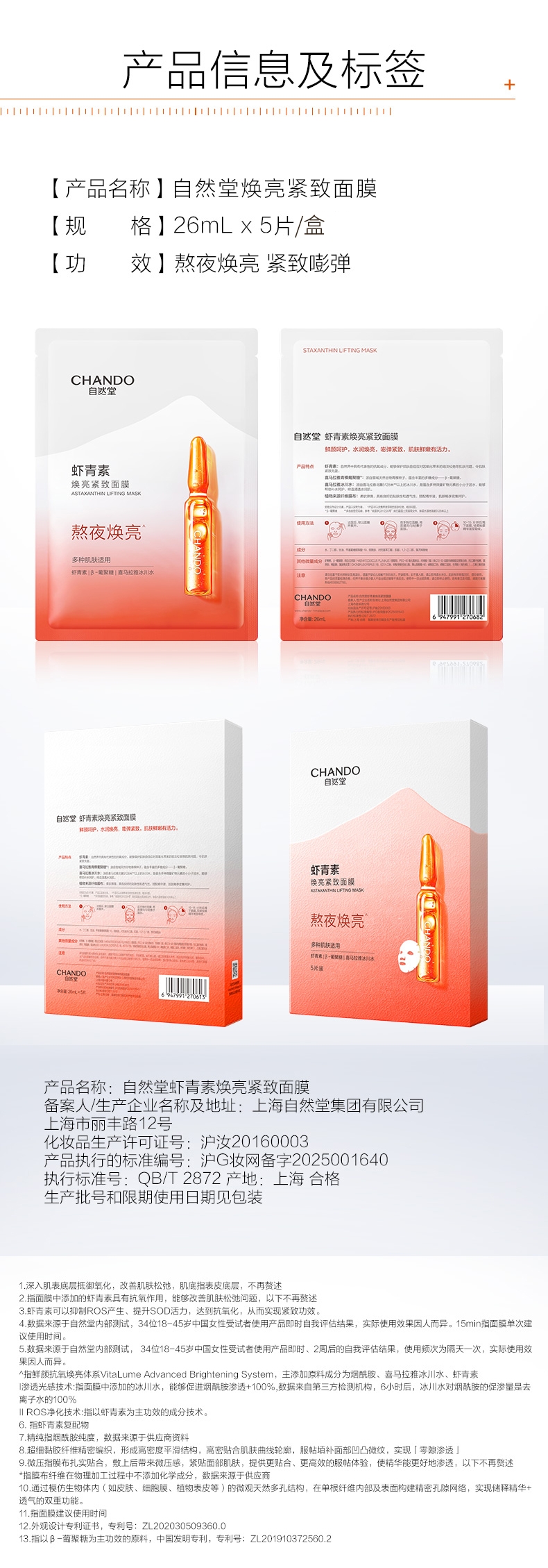 自然堂 虾青素紧致焕亮面膜10片ZRT16