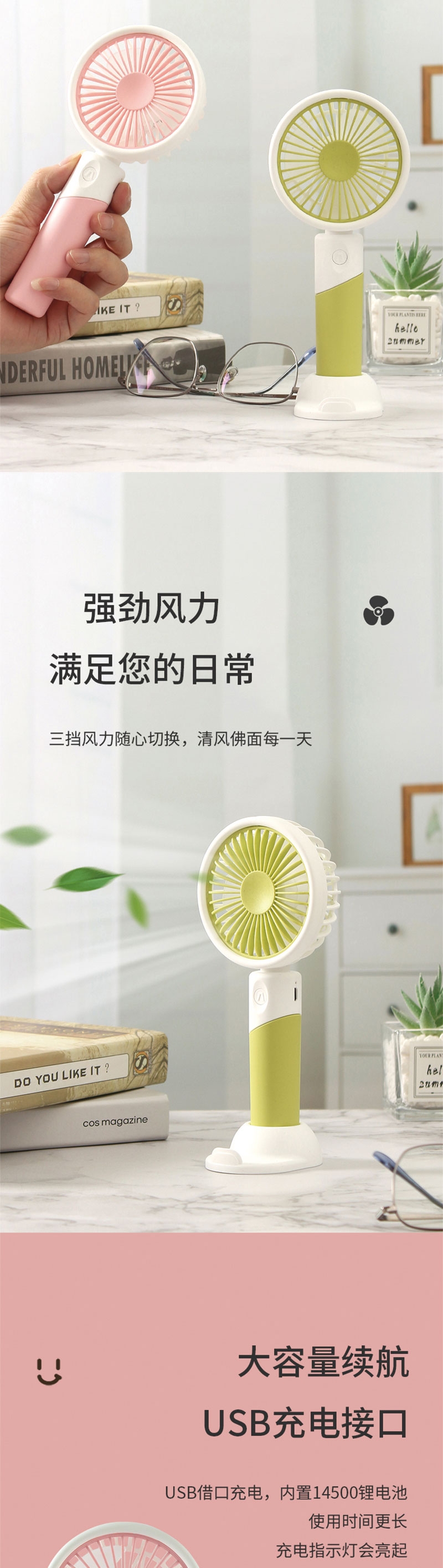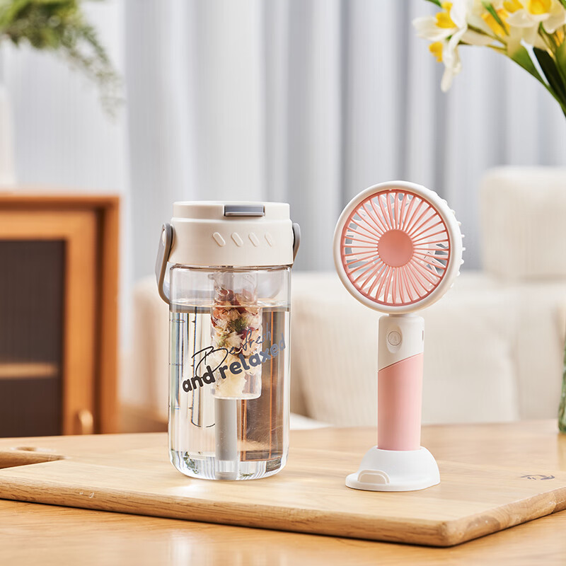 一茶一凉,夏日随身双舒适;风扇手持 立放双模式小巧轻便揣进包,走哪都能吹哪;清新颜值,实用也养眼