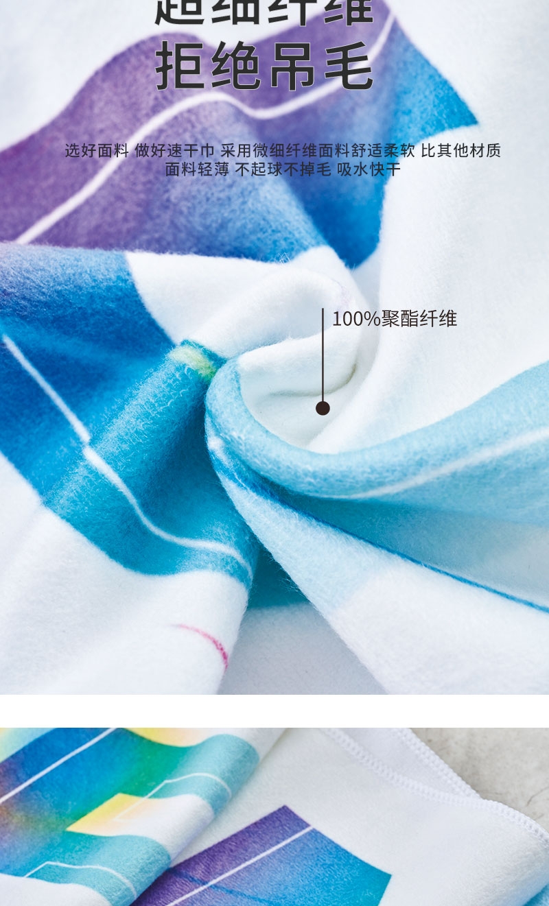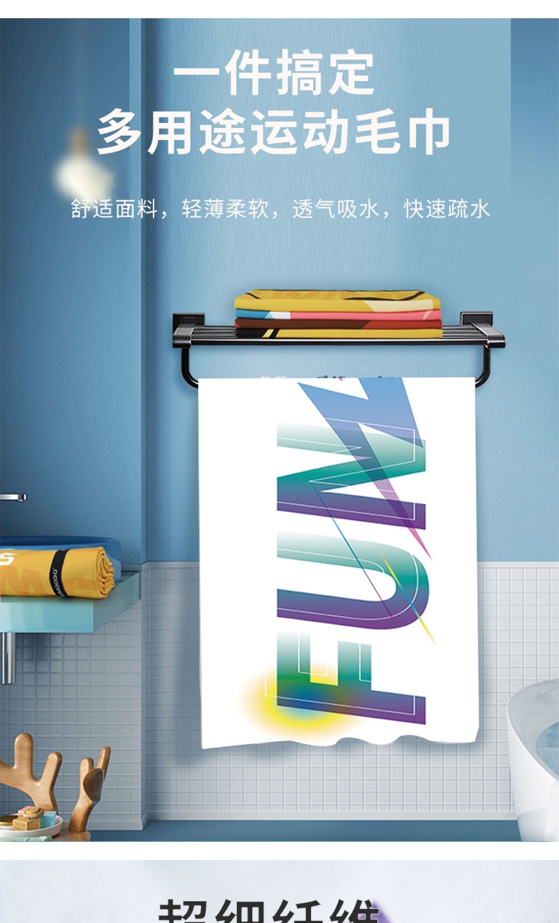 动毛巾:速干吸汗不黏腻,擦汗后快速干爽;吸水力拉满:比普通毛巾吸水快 3 倍 ;亲肤不刺激:材质细软像云朵,擦脸、擦身体都不会磨皮