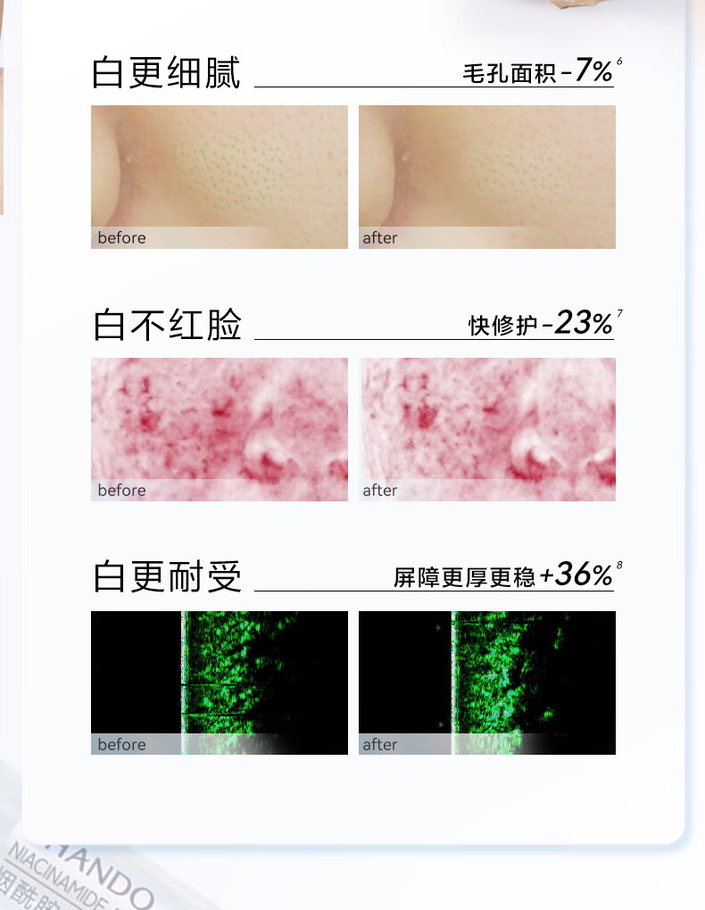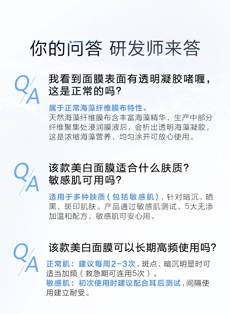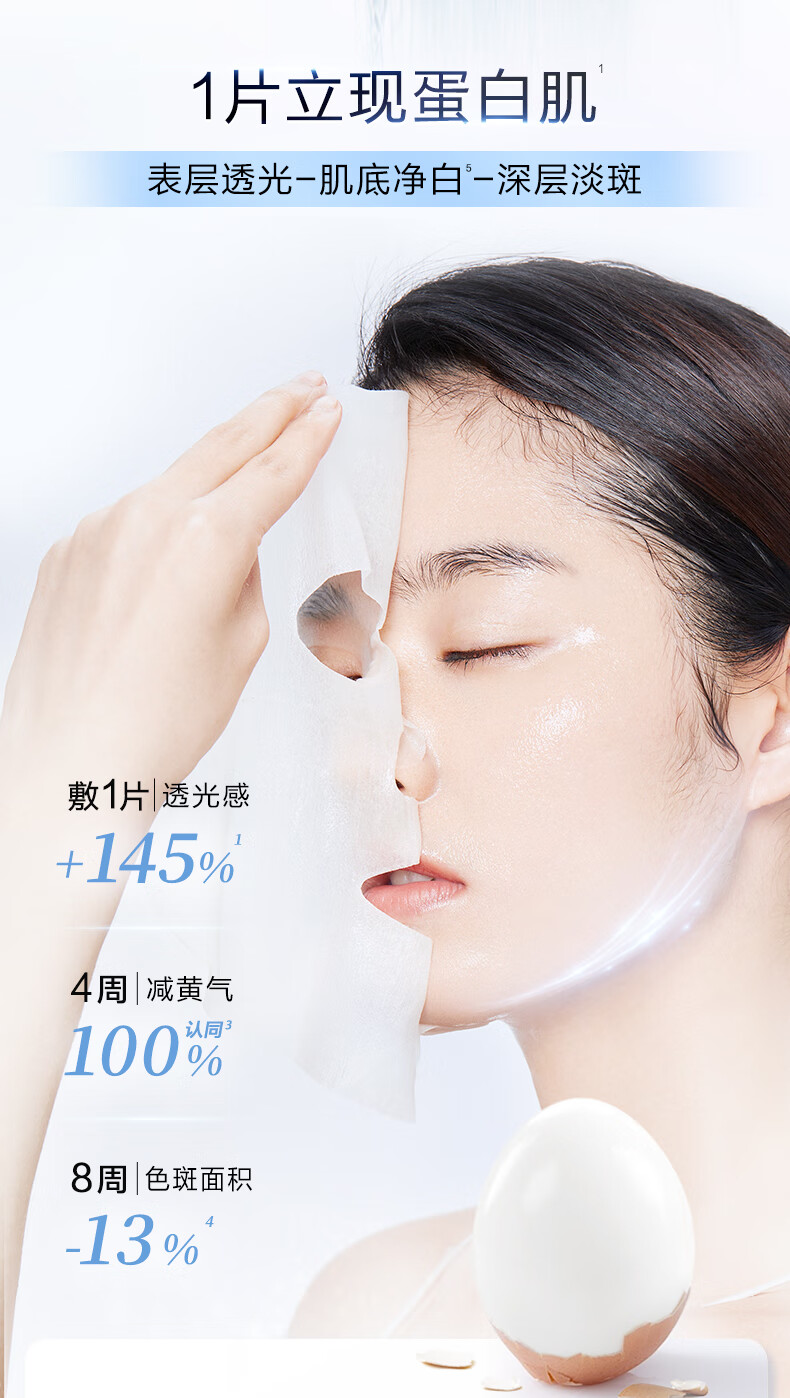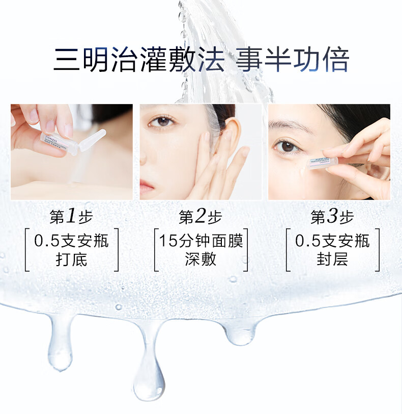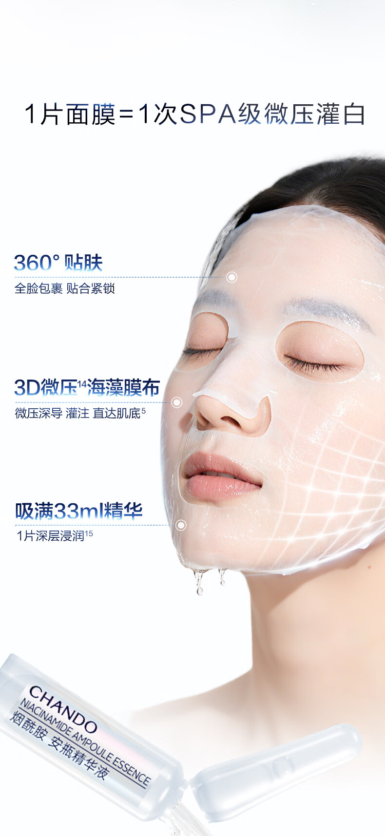深层保湿 焕亮升级;烟酰胺、β-葡聚糖、喜马拉雅冰川水;海藻膜布;无香精,无酒精,无色素,无矿物油