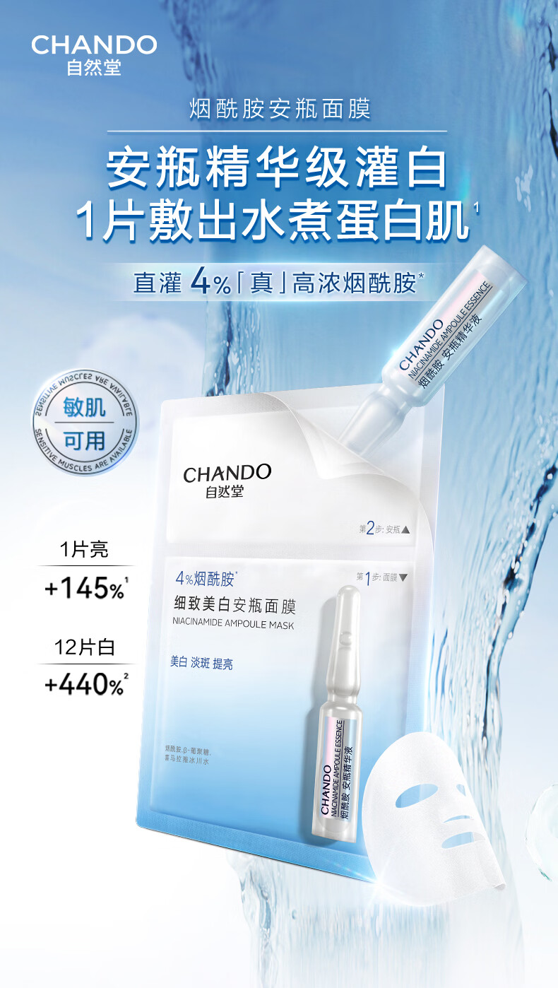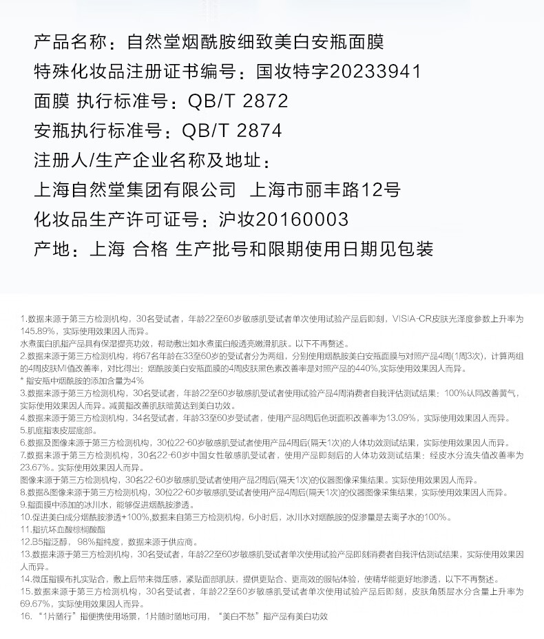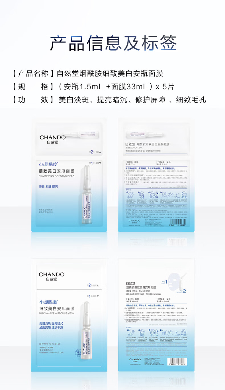 自然堂 烟酰胺细致美白安瓶面膜5片装