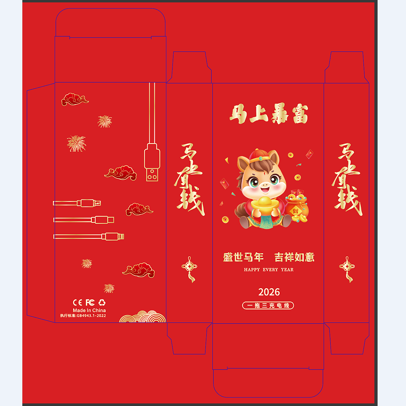 Pengdexin 开门红马上有钱一拖三伸缩数据线DX-004